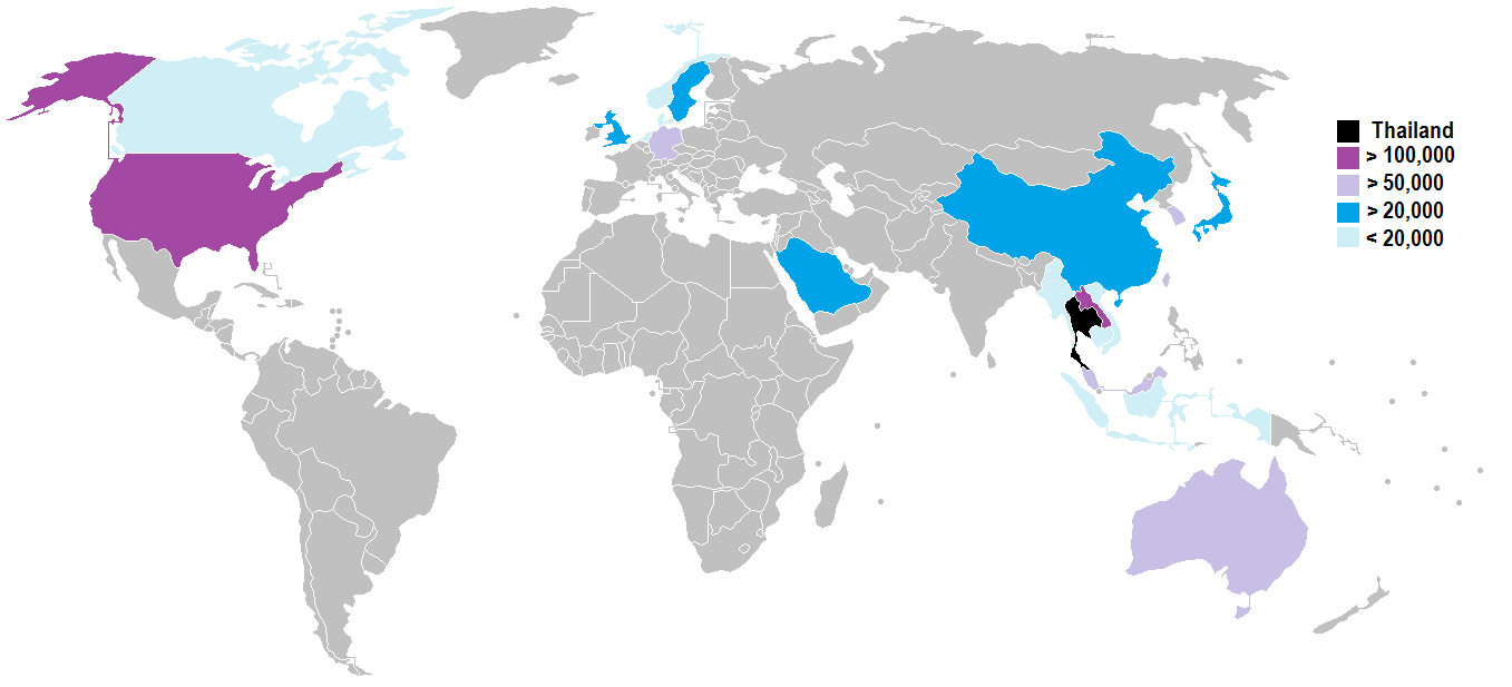 주요 거주 지역 | 태국 약 5100만 ~ 5780만 명 |