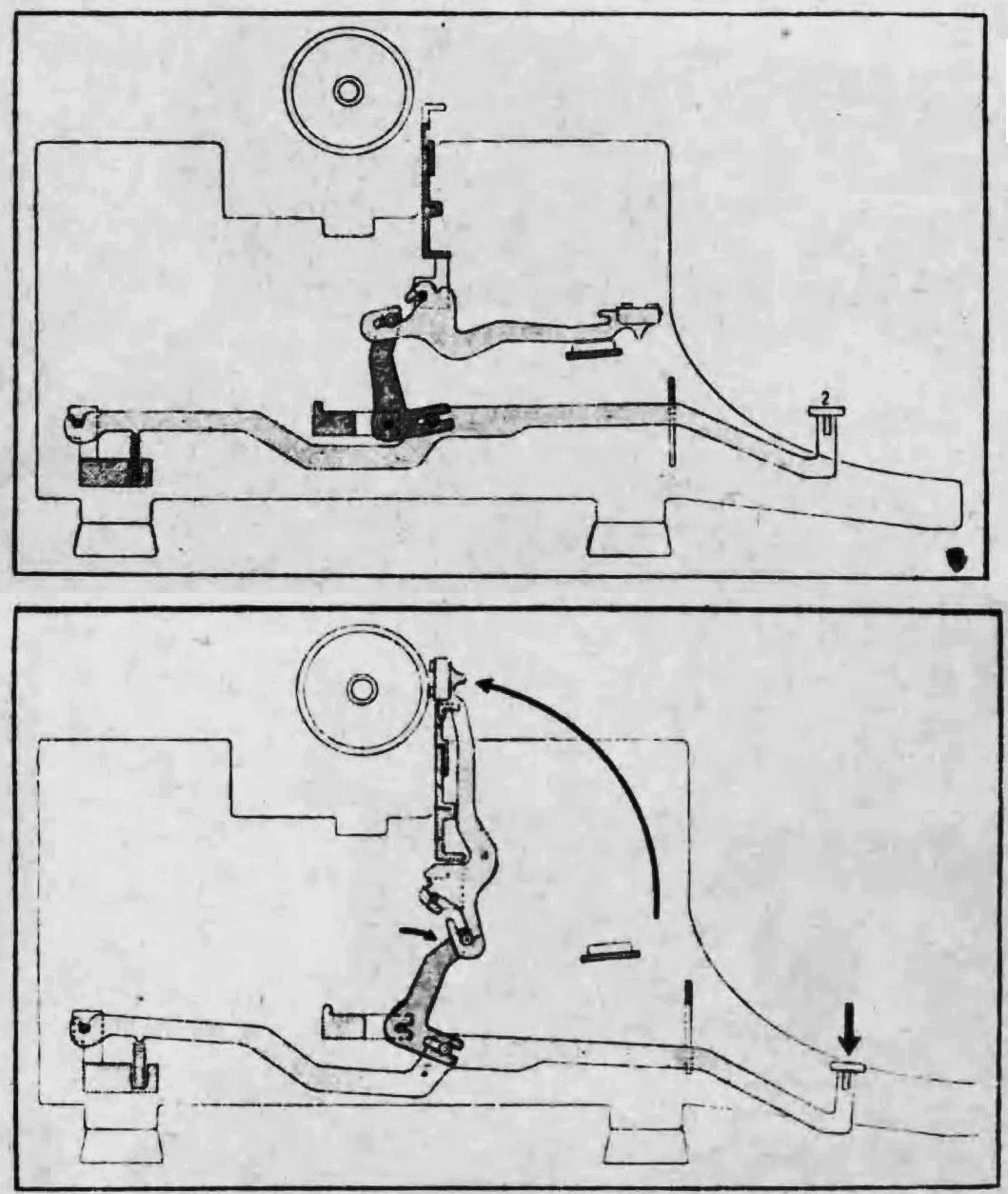 일반적인 타자기에서는 암이 잉크 리본과 종이에 충돌하여 감속한다. "Noiseless" 타자기는 복잡한 기구로 암을 감속시킨 다음 잉크 리본과 종이에 약간 느린 속도로 밀어 넣는다.[189] 이로 인해 타자기의 소음의 고주파 성분은 확실히 감소했지만, 반대로 저주파 성분이 강조된 결과가 되어, 광고에 있는 것처럼 "당신의 책상에서 몇 피트 떨어진 곳에서 사용해도 아무것도 들리지 않는다"는 것은 불가능했다.