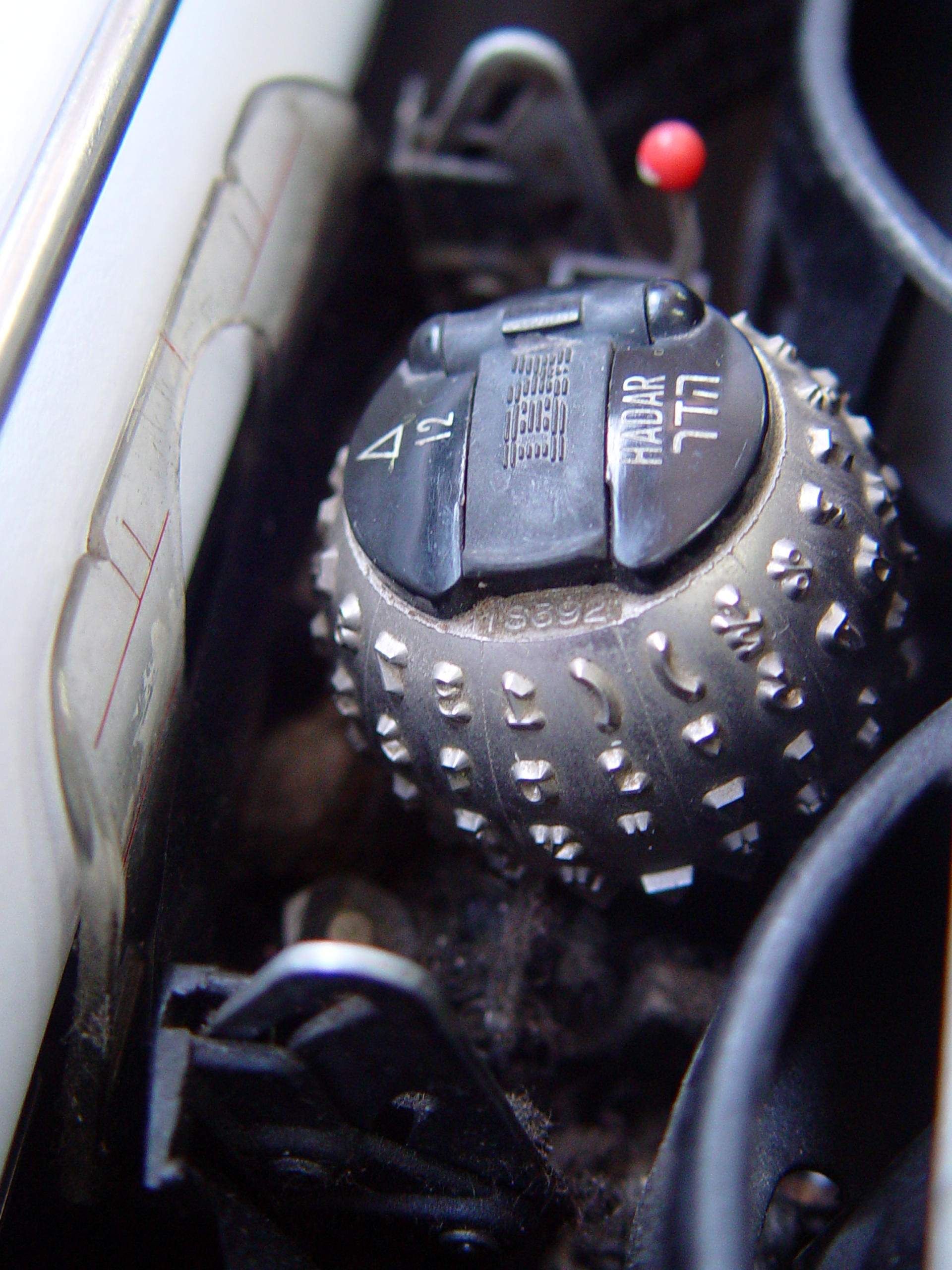 다른 배열의 어려움은 키를 놓았을 때 활자 막대가 안정적으로 제자리로 돌아가는 것을 보장하는 것이었다. 이것은 다양한 독창적인 기계적 설계를 통해 결국 해결되었고, 활자 막대가 플래튼의 앞면을 향해 앞으로 쳐지는, 이른바 "가시형 타자기"라고 불리는 전면 타격 방식이 표준이 되었다. 최초의 전면 타격 방식 타자기 중 하나는 1893년에 출시된 다우티 비저블로, 표준이 된 4열 키보드도 함께 도입했지만, 이러한 기능을 갖춘 최초의 주요 타자기는 2년 후에 출시된 언더우드였다.[52][53]