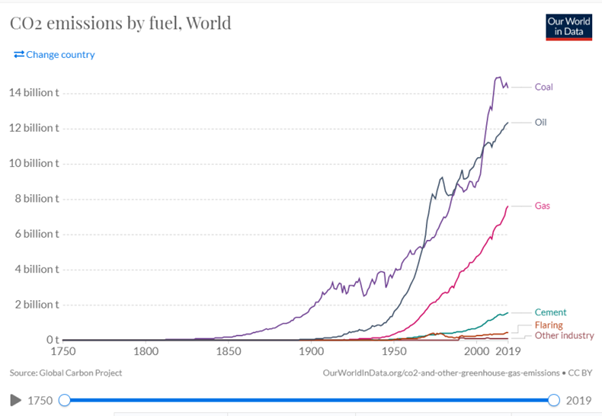 세계적으로 산업화가 진행되며 화석 연료의 사용이 증가하였고, 그에 따라 이산화탄소 배출량도 증가하였다. 하지만 이산화탄소를 흡수하는 숲이나 산호 등은 오히려 줄어들면서 균형이 깨졌고 공기 중에 있는 이산화탄소의 양이 계속 증가하고 있다.