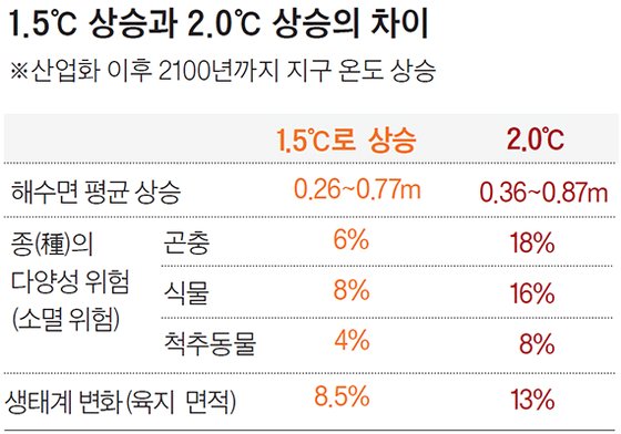 2015년 체결된 파리 협정은 산업 혁명 이전과 비교해 기온 차이를 2℃보다 낮은 수준으로 지구 온도를 유지하고, 1.5℃ 이하로 제한하기 위한 노력을 추구하자는 내용을 담고 있다. 1.5℃와 2℃의 차이는 0.5℃ 밖에 안 나지만 그에 따른 악영향은 심각한 수준이기 때문에, 1960~2020년 동안 오른 1℃의 차이를 가볍게 봐서는 안된다.