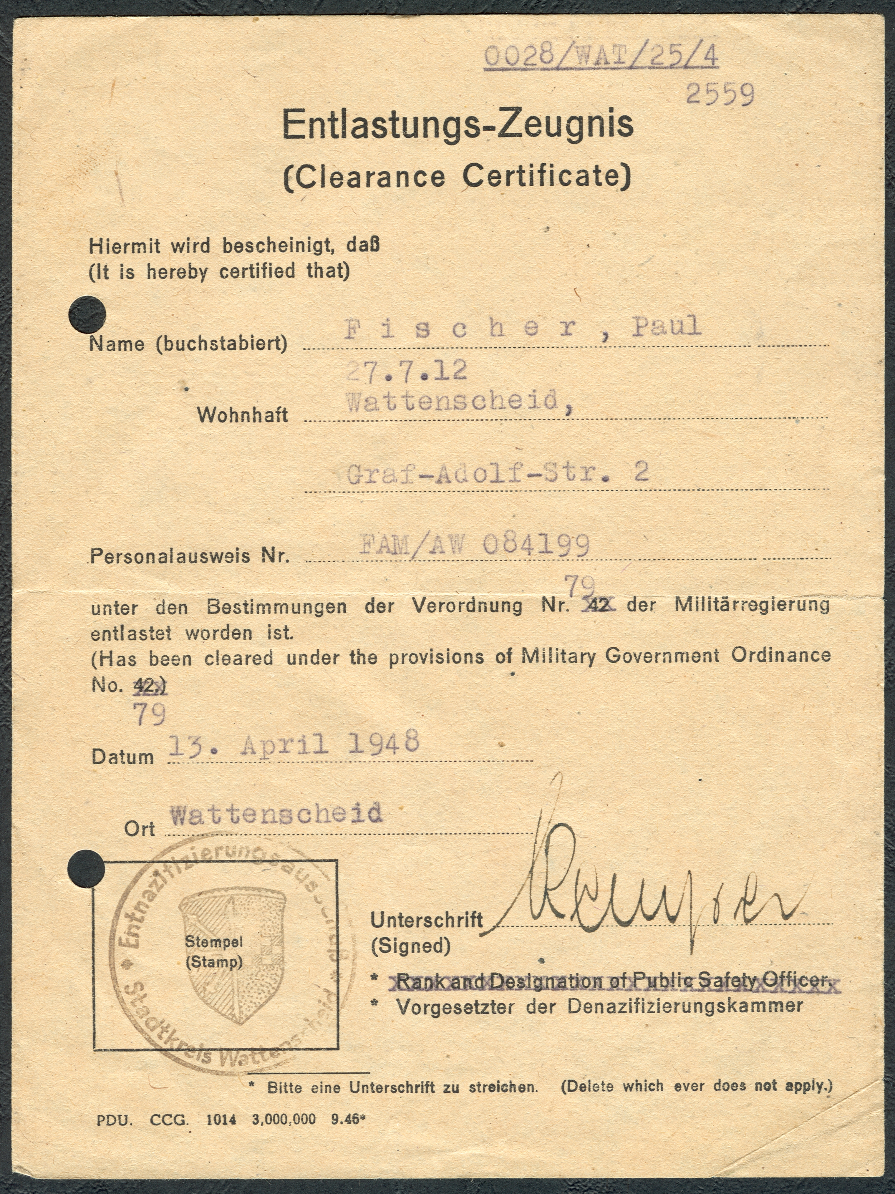 1946년 1월, 영국은 탈나치화 위원회를 독일인에게 이양했다.[71]
