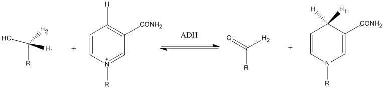 A는 산화될 기질을 나타내고, B는 수소화물 수용체를 나타낸다. 수소화물이 A에서 B로 전달될 때 A가 양전하를 띠는 것에 주목해야 한다. 이것은 효소가 수용체를 BH로 환원시키기 위해 기질로부터 두 개의 전자를 가져오기 때문이다.[20]