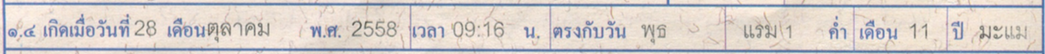 1999년 | 2월 16일 | 토 (เถาะ) | 토끼 (兔, 묘(卯)) |