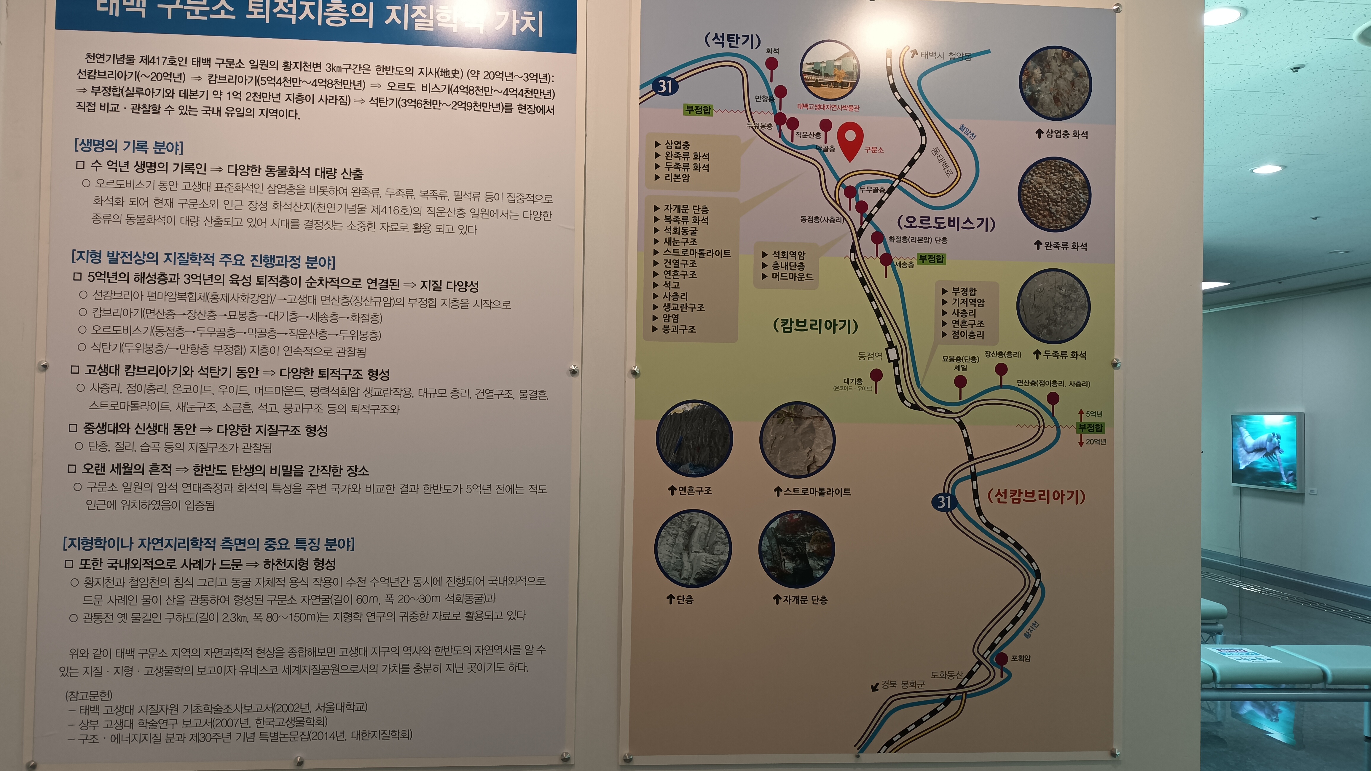 태백시는 옥천 습곡대의 동부에 위치한다. 지질은 주로 고생대 조선 누층군의 석회암과 평안 누층군이 분포하고 있으며, 오랜 지질시대의 지각운동을 받아 지질구조가 매우 복잡하다.[23]