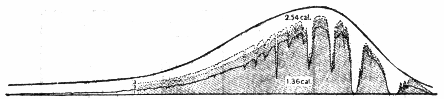 1902년부터 1957년까지, 찰스 애보트를 비롯한 여러 연구자들이 고지대에서 관측을 수행하여 1.322kW/m2 ~ 1.465kW/m2 사이의 값을 얻었다. 애보트는 랭글리의 측정값에 오류가 있음을 발견했다. 애보트의 측정값은 1.318kW/m2 ~ 1.548kW/m2 (1.89 ~ 2.22 칼로리) 사이에서 변동했다.[7]1954년 태양 상수는 2.00 cal/min/cm² ± 2% (현재 값보다 약 2.5% 낮음)로 추정되었다.[8]