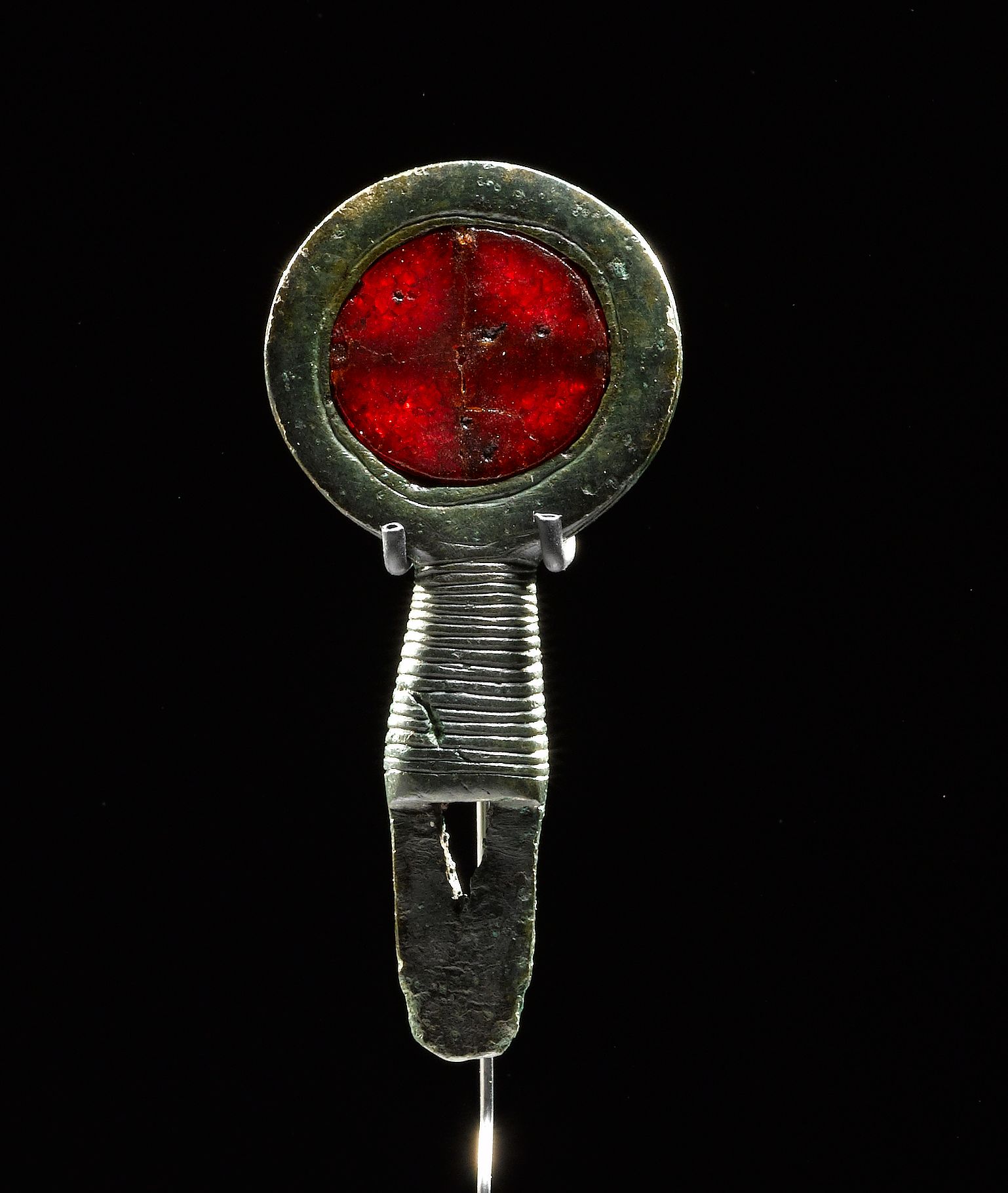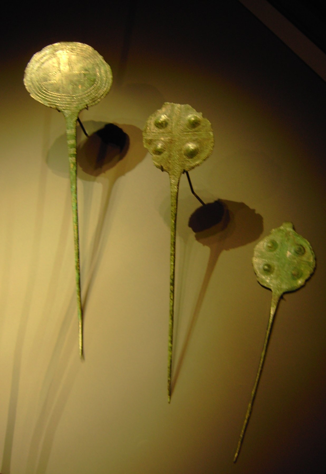 스위스에서 발견된 기원전 2000년대 전반의 장식용 핀. 원형 머리가 십자 모양으로 잘려져 있다.