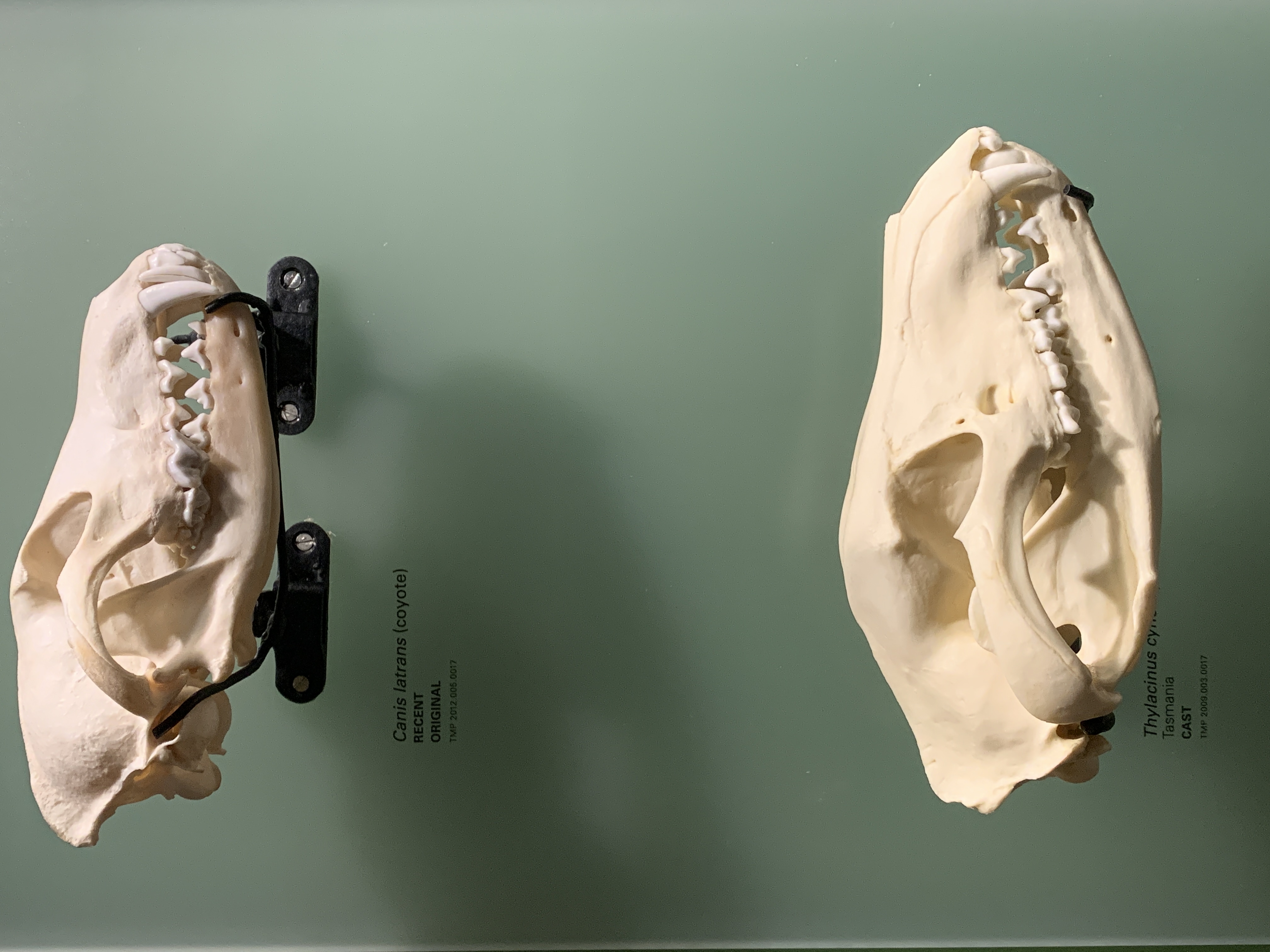참고로, 주머니늑대는 캥거루처럼 뒷다리만으로 몸을 지탱하고 설 수 있는 독특한 능력을 가지고 있었다.[181]