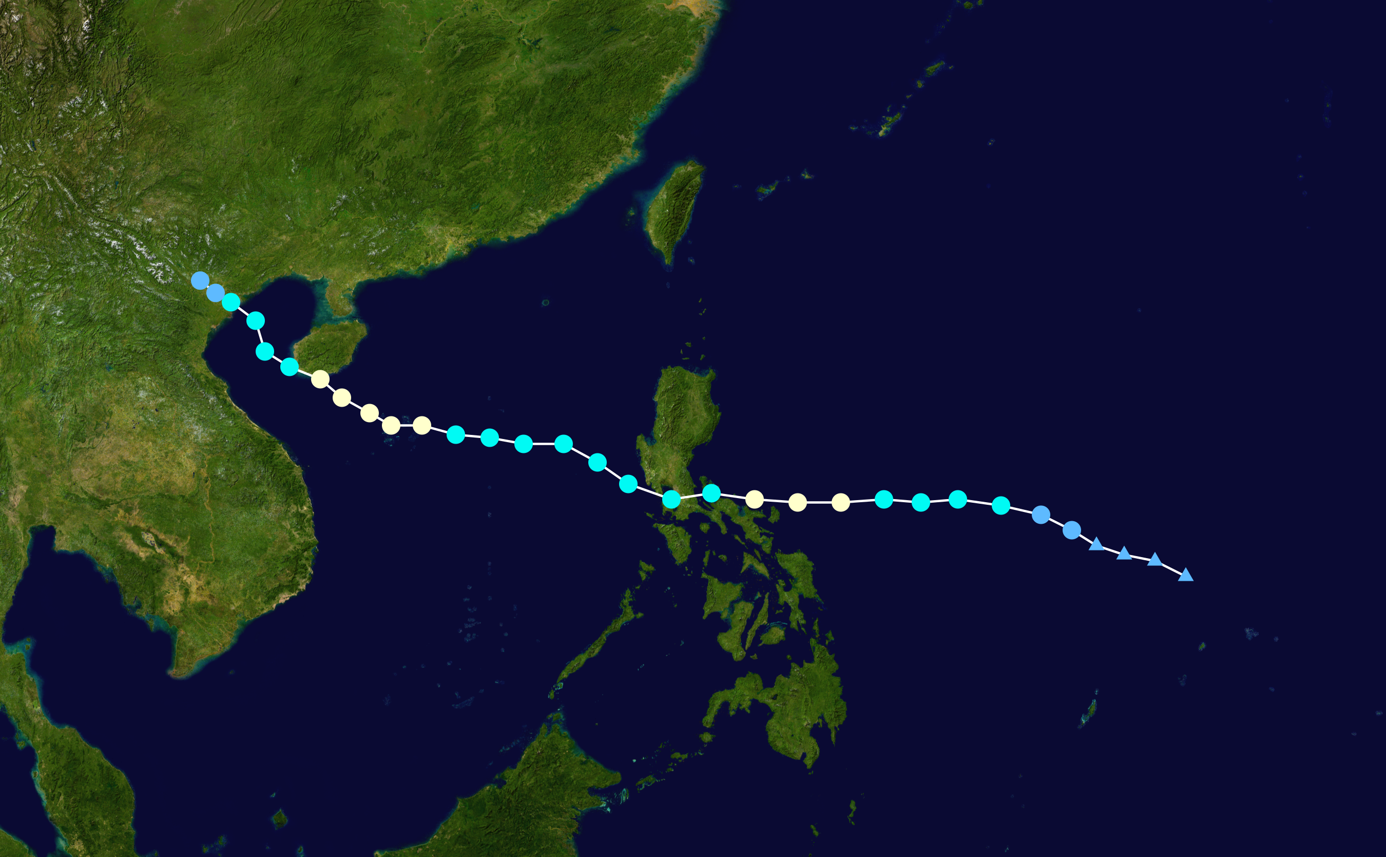 7월 14일 0시에 태풍 꼰선은 필리핀 루손섬 중부를 통과하여 남중국해로 빠져나갔다.[38] 남중국해로 진출한 꼰선은 일시적으로 세력이 약화되었다가 다시 발달하며 서북서쪽으로 이동했다. 7월 16일부터 17일에 걸쳐 중국 하이난섬에 강한 세력으로 접근하여 피해를 입혔다.[38] 이후 통킹만을 지나 7월 17일 15시에 중심 기압 985hPa, 최대 풍속 25m/s로 베트남 북부에 재상륙하였고, 7월 18일 9시에 열대저기압으로 약화되었다.[38]3. 대비