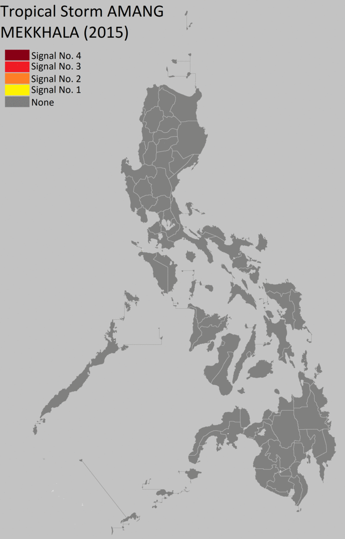 열대 폭풍 메칼라(아망)는 필리핀 비콜 지방에서 3명의 사망자를 냈다.[26] 이 지역의 피해는 대부분 농업 분야에 집중되었으며, 피해액은 3억 1,870만 필리핀 페소(₱)(US$713만)에 달했다.[26] 사마르에서도 3,030만 필리핀 페소(US$678,000)의 농업 피해가 발생했다.[28] 작물 피해와 가뭄으로 인해 2015년 5월, 정부는 곡물을 수입했다.[27] 전국적으로 48채의 가옥이 파괴되었고, 490채가 추가로 피해를 입었으며,[28] 사회 기반 시설 손실은 4,970만 필리핀 페소(US$111만)에 달했으나, 도로 수리는 빠르게 완료되었다.[26]