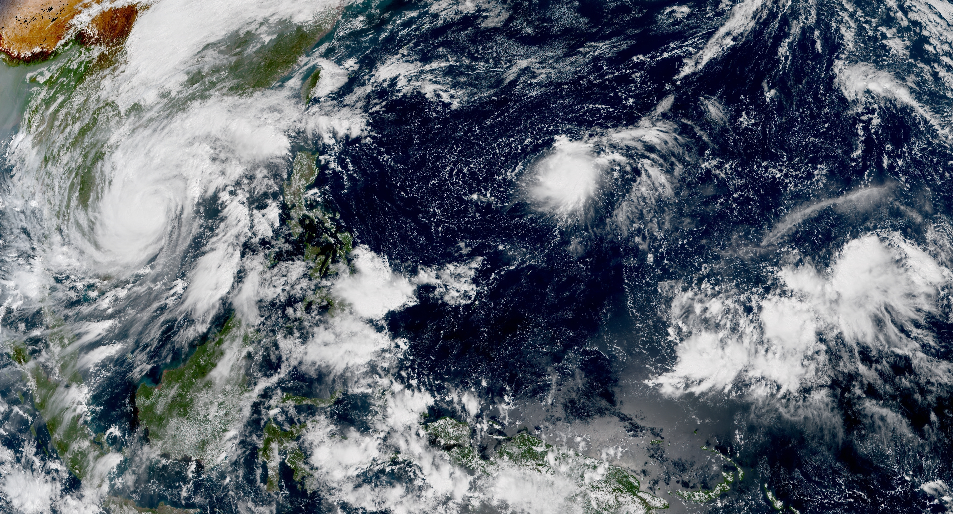 10월 28일, 서부 태평양에서 3개의 열대 저기압이 동시에 발생했다. 왼쪽부터: 몰라베, 고니, 그리고 나중에 아사니가 된 저기압 (오른쪽 하단).