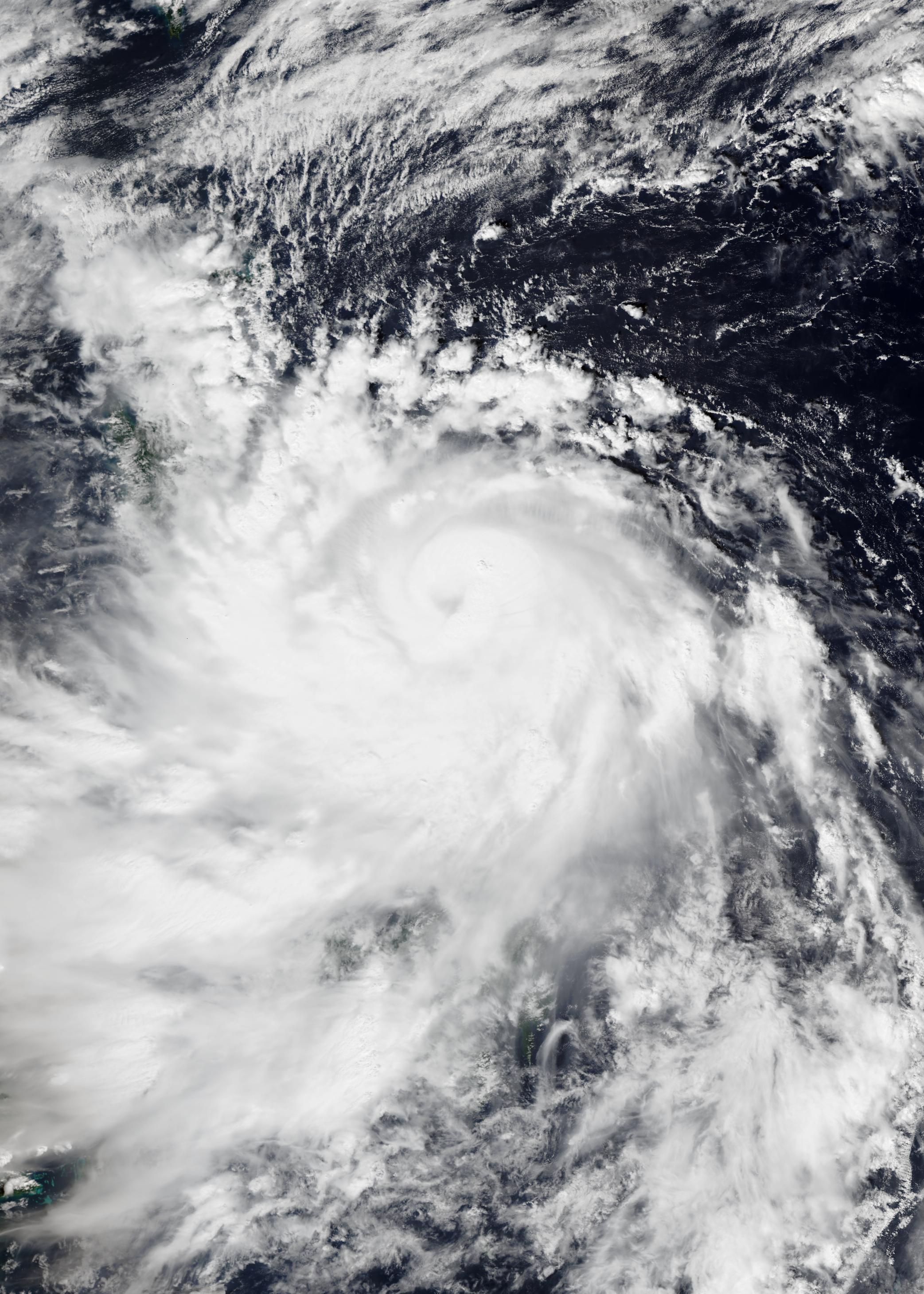 2020년 10월 27일 몰라베 태풍의 최대 강도 모습