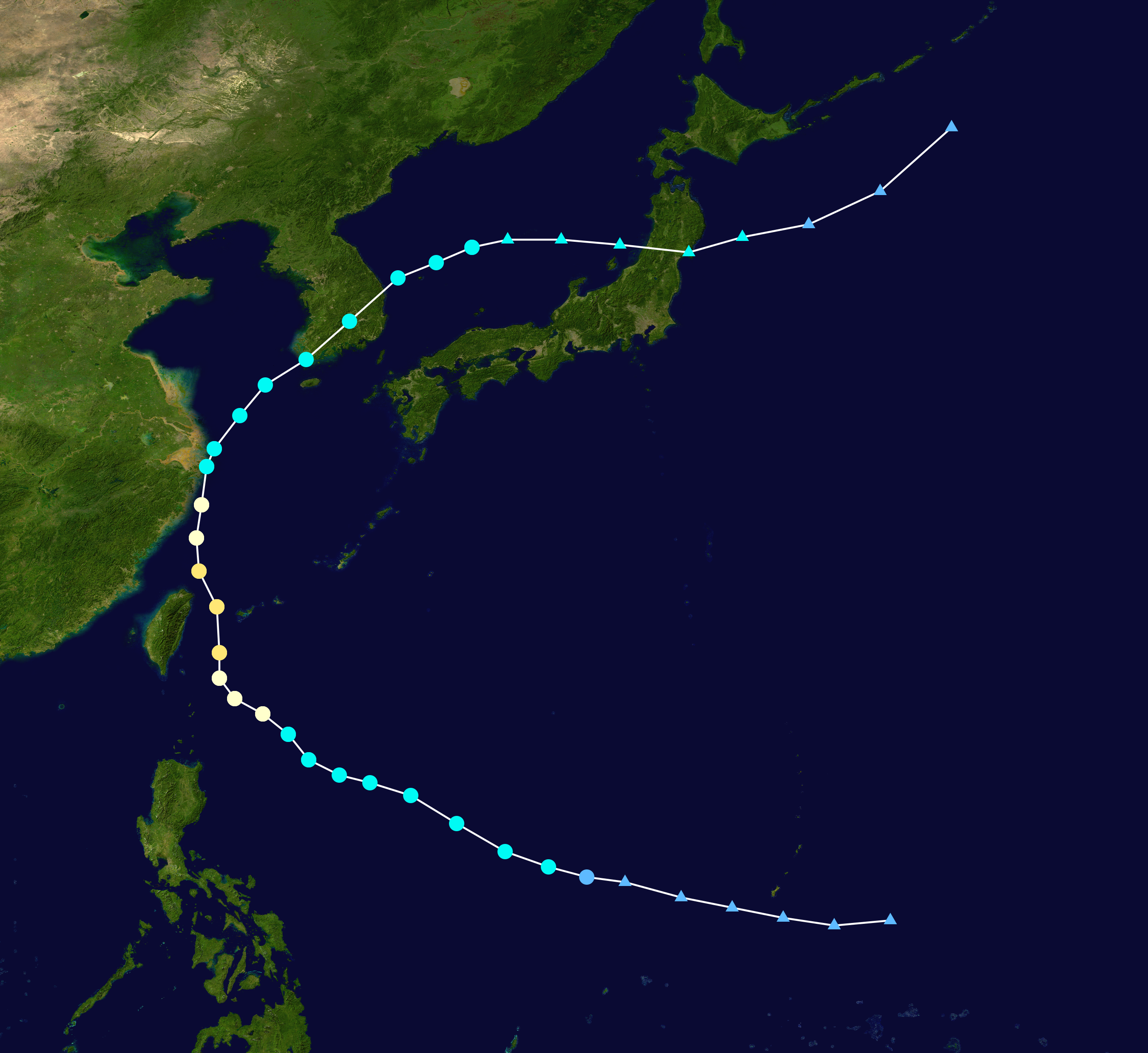 10월 1일 오후 3시에 중국 저장성 타이저우 시 동쪽 해상을 상당히 근접해서 지났고, 같은 날 오후 9시에는 저장성 저우산 시 동쪽 해상을 지나가면서 중국 육지와의 마찰로 인해 중심기압 980hPa, 최대풍속 31m/s의 세력으로 급격히 약화되었다.[16]2. 5. 대한민국