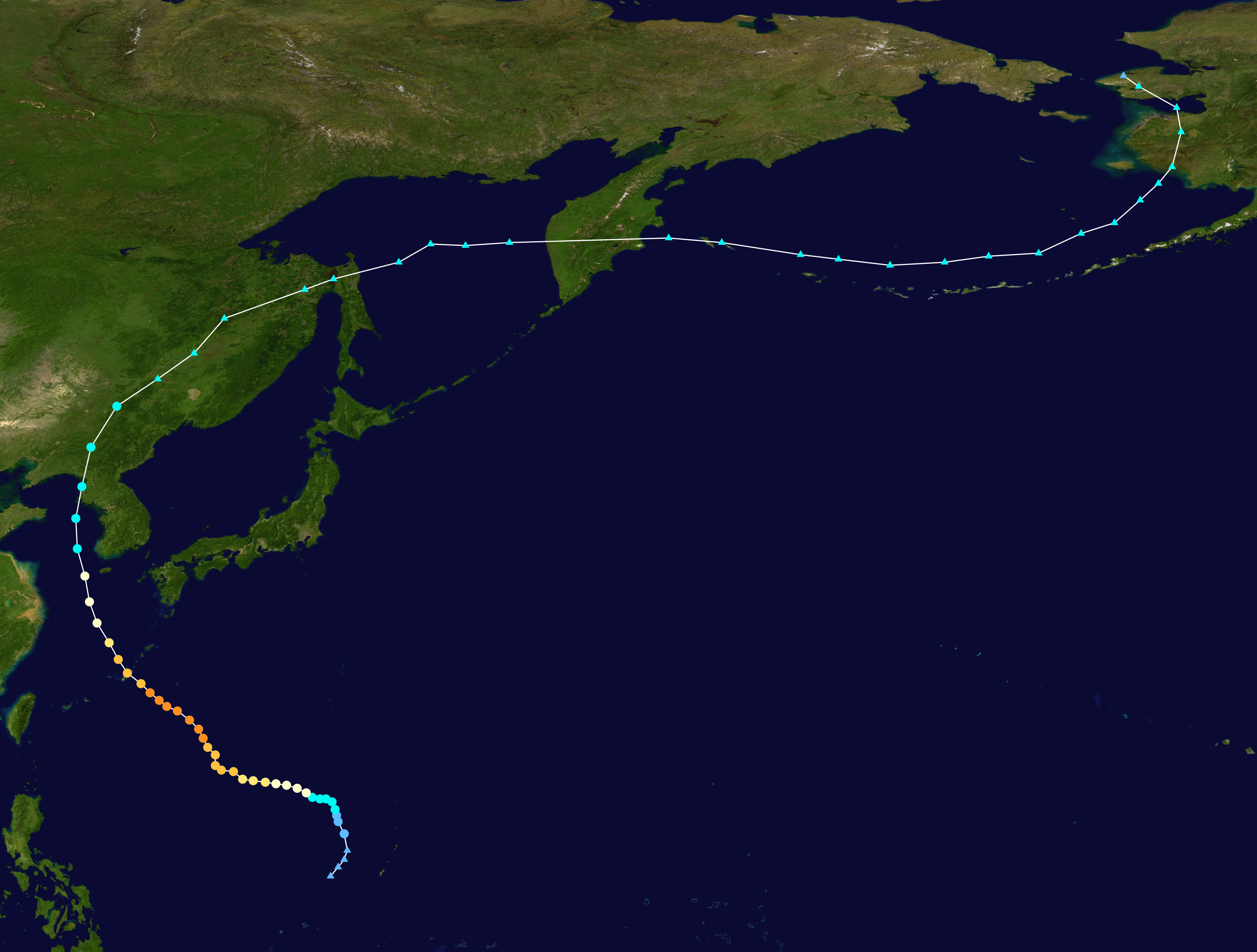 8월 26일 오후 9시 | 920 hPa | 53 m/s | 일본 오키나와 상륙, 오키나와 북동쪽 40 km 육상 통과 |