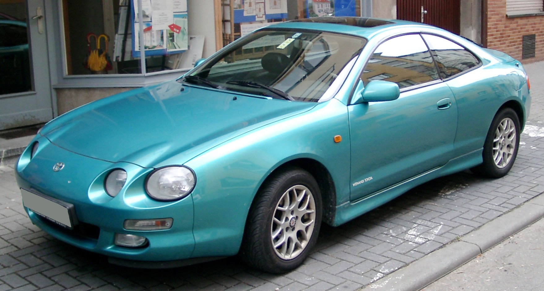 토요타 셀리카 GT 리프트백은 밝은 터키옥색 금속성 페인트를 사용한다.