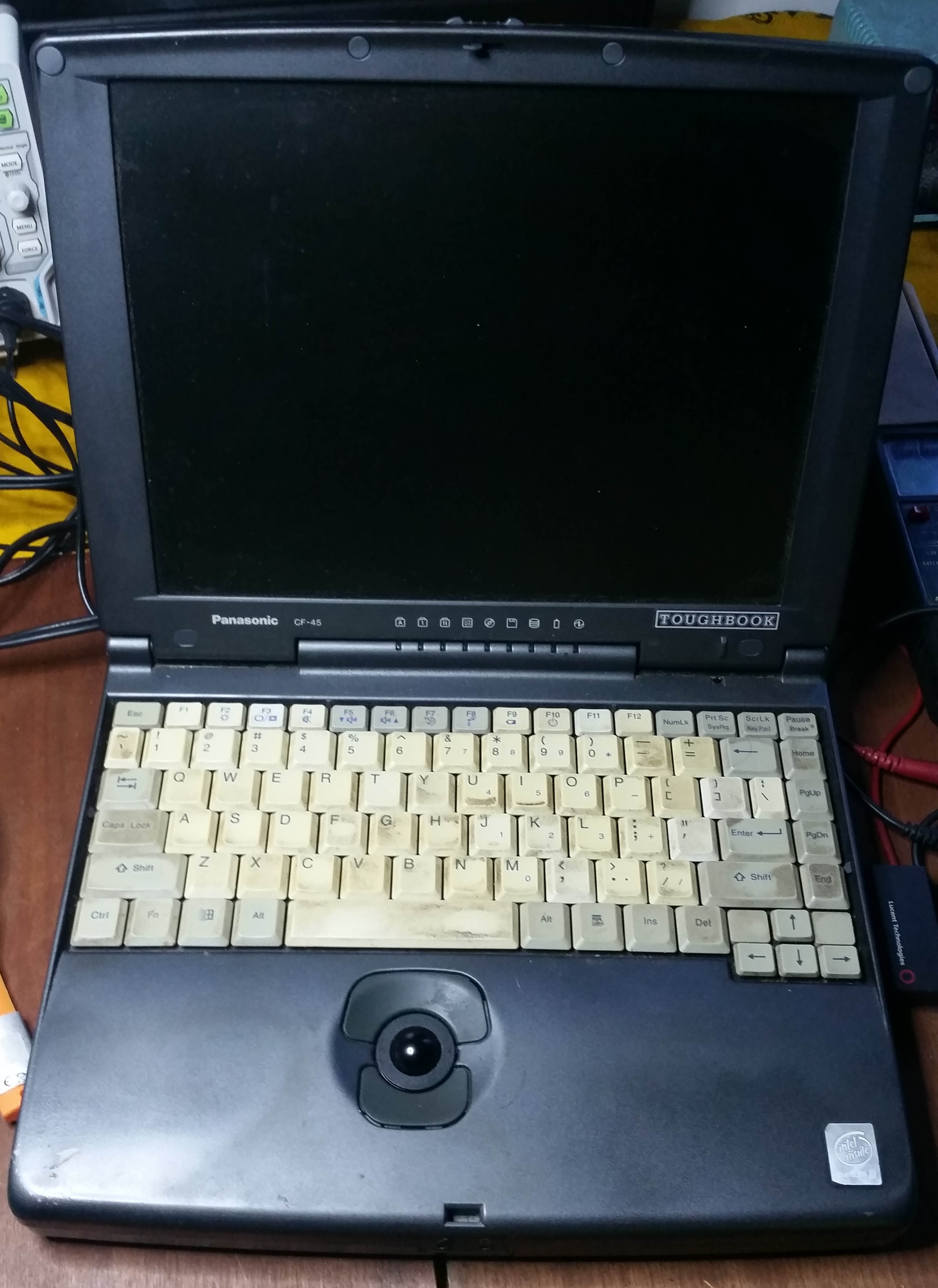 CF-45 모델은 터프북 시리즈의 초기 모델 중 하나이다. 200 또는 233MHz로 작동하는 인텔 펜티엄 MMX를 탑재했으며, 기본 메모리는 32MB이고 하드 디스크 아래에 접근 가능한 소켓을 통해 최대 96MB EDO SODIMM까지 확장 가능하다. 2.5인치 IDE 하드 디스크 인터페이스 (2GB 및 4GB의 기본 용량), 슬림형 CD 및 3.5인치 플로피 드라이브와 두 개의 PCMCIA 슬롯이 포함되어 있다. 장치의 다른 인터페이스로는 적외선 포트, USB 1.1 인터페이스, 키보드 또는 마우스용 PS2, RS232 시리얼, 병렬 프린터 포트, 15핀 VGA 출력, 헤드폰 및 마이크 잭이 있었다. 왼쪽에는 펜이나 다른 작은 물건으로 조작할 수 있는 작은 하드웨어 리셋 버튼이 있다. 장치 하단에는 도킹 스테이션/확장을 위한 100핀 확장 슬롯이 있다. 디스플레이는 12.1인치 TFT로 800x600 픽셀 해상도와 256k 색상을 지원한다.배터리는 10.8V 2.3Ah의 소형 Li-Ion이며, 하드 디스크 베이와 마찬가지로 하단에 있는 작은 덮개를 통해 접근할 수 있다. 전원 공급 장치는 100–240 V AC의 입력 전압을 지원하며, 출력은 15.6 V 3.85 A로 정격화되어 있다.