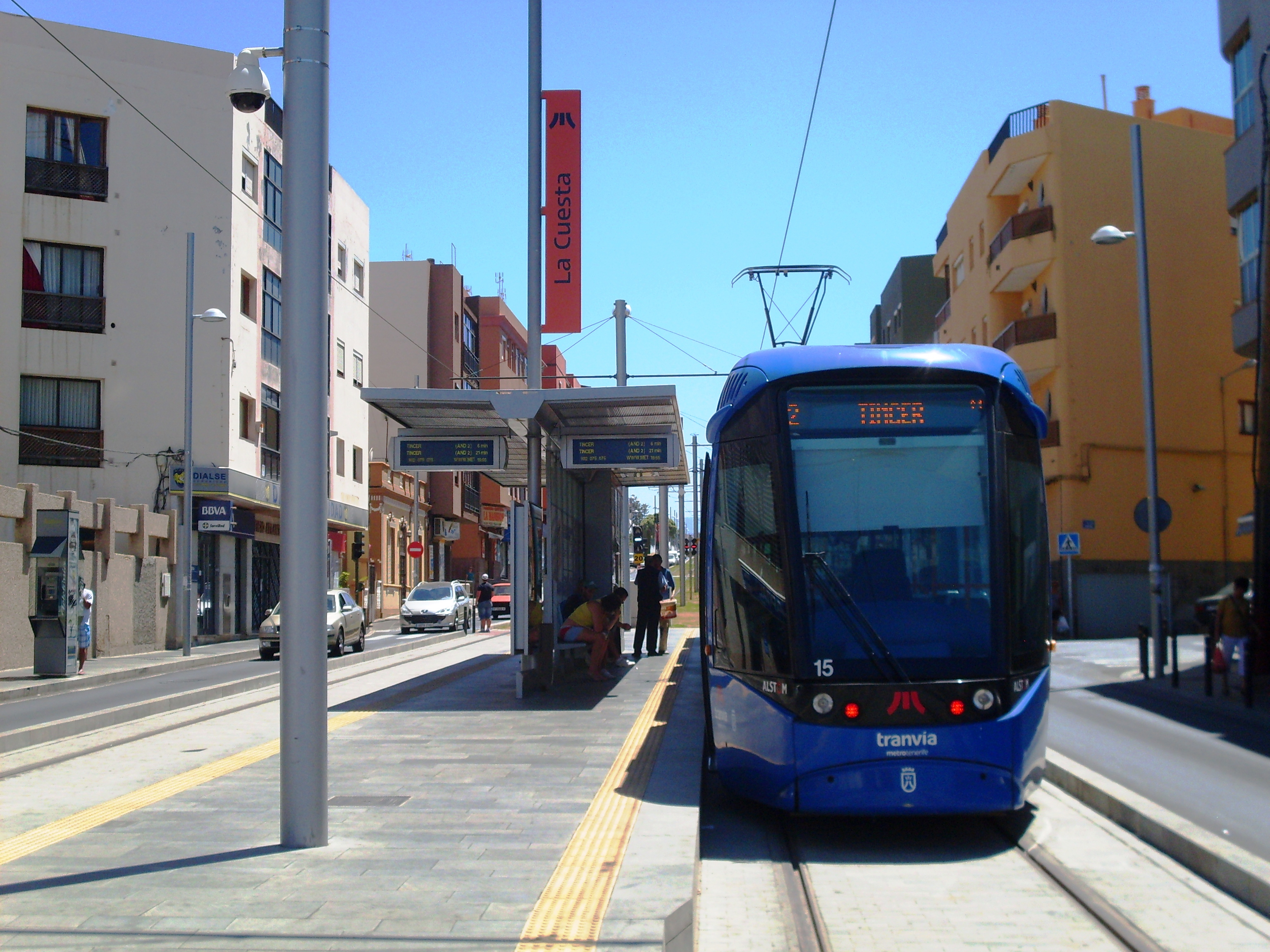 3억 600만 유로의 예산이 승인된 후,[4][9] 2004년에 테네리페 트램 건설이 시작되었다. 산타 크루스와 라 라구나를 연결하는 노선으로, 2005년 12월까지 알스톰이 라 꾸에스타의 라 라구나 대학교 병원 근처에서 600m 구간 시험 운전을 할 수 있을 만큼 충분한 선로가 건설되었다. 2006년 8월에는 20대의 트램 유닛 중 마지막 유닛이 인도되었다.[10]