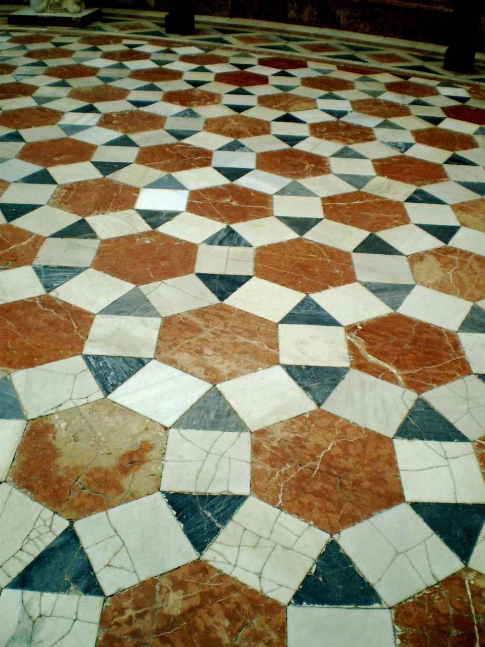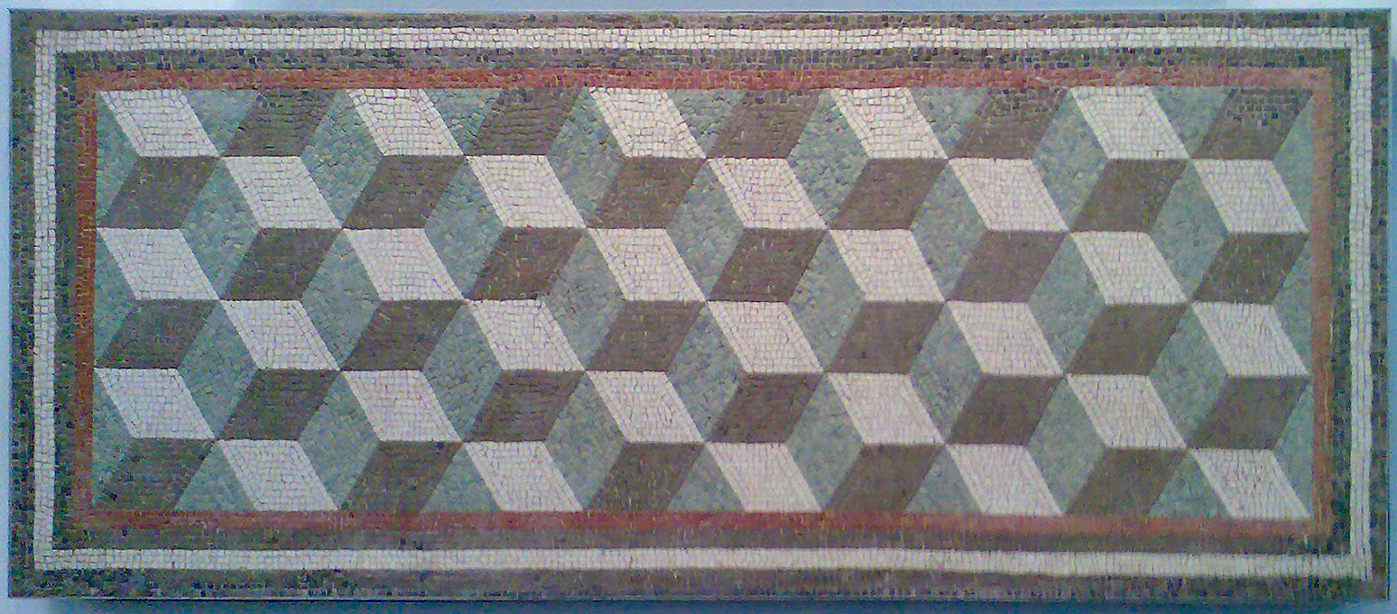 고대 로마 시대에는 테세라(tessera)라고 불리는 작은 사각형 모자이크 타일이 널리 사용되었으며,[98] 기하학적 무늬를 표현하기도 했다.[99][100]