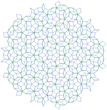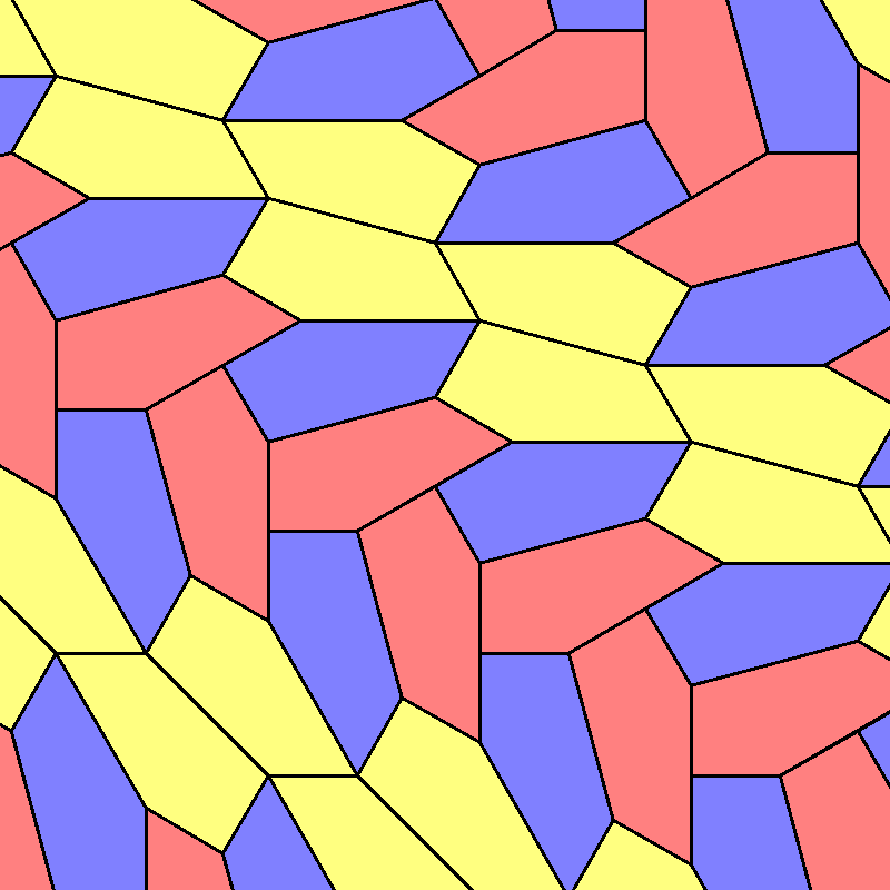 준결정은 주기적인 결정 구조가 아닌 규칙적인 회절 패턴을 보이는 고체 물질이며, 댄 셰흐트만이 발견하여 2011년 노벨 화학상을 수상했으며, 다각형과 이코사헤드럴의 두 가지 유형이 존재하고, 높은 열 및 전기 저항 등의 특성을 나타낸다. - 테셀레이션 - 펜로즈 테셀레이션