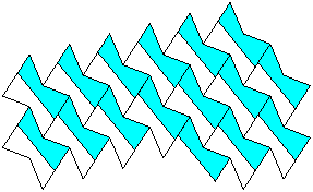 - '''모서리 대 모서리 타일링:''' 맞닿은 타일이 한 변을 완전히 공유하는 다각형 테셀레이션이다. 벽돌쌓기는 각 직육각형 벽돌의 긴 변을 마주하는 두 벽돌과 공유하기 때문에 모서리 대 모서리 테셀레이션이 아니다.[113]