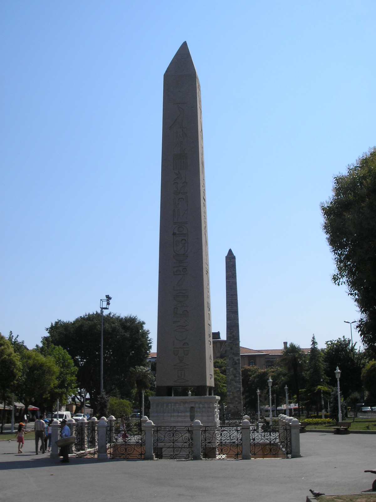 테오도시우스 오벨리스크는 투트모세 3세가 기원전 15세기경 카르나크 신전에 세운 붉은 화강암 오벨리스크로, 테오도시우스 1세가 콘스탄티노폴리스로 옮겨 현재는 상단 부분만 남아있으며, 받침대에는 그의 업적을 기리는 부조와 비문이 새겨져 있다.
