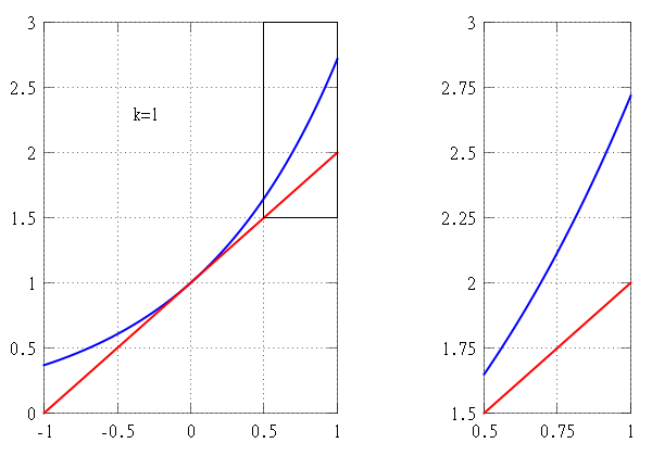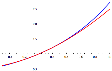 테일러 정리는 함수를 특정 지점 근방에서 다항식 으로 근사 하는 방법을 제공하며, 이는 물리학을 포함한 다양한 과학 및 공학 분야에서 복잡한 함수를 다루는 데 유용하게 사용된다. 함수의 값을 직접 계산하기 어렵거나 함수의 형태가 복잡할 때, 테일러 다항식을 이용하여 비교적 간단한 형태로 함수의 거동을 이해하고 예측할 수 있다. 예를 들어, 지수 함수 f(x) = e^x 를 구간 [-1, 1] 에서 특정 오차 한계 내에서 근사해야 하는 경우를 생각해 보자. 테일러 정리에 따르면, ''x'' = 0을 중심으로 하는 이 함수의 ''k''차 테일러 다항식 P_k(x) 는 다음과 같다. : P_k(x) = 1+x+\frac{x^2}{2!}+\cdots+\frac{x^k}{k!} 테일러 정리는 이 근사값과 실제 함수값 사이의 오차, 즉 나머지 항 R_{k+1}(x) 의 크기를 추정하는 방법도 제공한다. : R_{k+1}(x)=\frac{e^\xi}{(k+1)!}x^{k+1} (여기서 \xi 는 0과 ''x'' 사이의 어떤 값) 함수 e^x 의 성질을 이용하여 나머지 항의 상한값을 계산하면, 구간 [-1, 1] 에서 오차의 절댓값을 다음과 같이 제한할 수 있다. : |R_{k+1}(x)| \leq \frac{4|x|^{k+1}}{(k+1)!} \leq \frac{4}{(k+1)!} 만약 오차를 10^{-5} 보다 작게 만들고 싶다면, 위 부등식을 만족하는 가장 작은 정수 ''k''를 찾으면 된다. 계산 결과, ''k'' ≥ 9일 때, 즉 9차 이상의 테일러 다항식을 사용하면 원하는 정밀도를 얻을 수 있다. (계승 값 9! = 362,880 및 10! = 3,628,800 참고) : \frac{4}{(k+1)!} < 10^{-5} \quad \Leftrightarrow \quad (k+1)! > 400000 \quad \Leftrightarrow \quad k \geq 9 따라서 테일러 정리를 이용하면 다음과 같은 근사식을 얻을 수 있으며, 이 근사식의 오차는 구간 [-1, 1] 에서 10^{-5} 미만임이 보장된다. : e^x \approx 1+x+\frac{x^2}{2!} + \ldots + \frac{x^9}{9!} 이처럼 테일러 급수는 복잡한 함수의 값을 다항식 계산을 통해 원하는 정밀도로 근사할 수 있게 해주며, 이는 물리 현상을 수학적으로 모델링하고 분석하는 과정에서 중요한 도구가 된다.