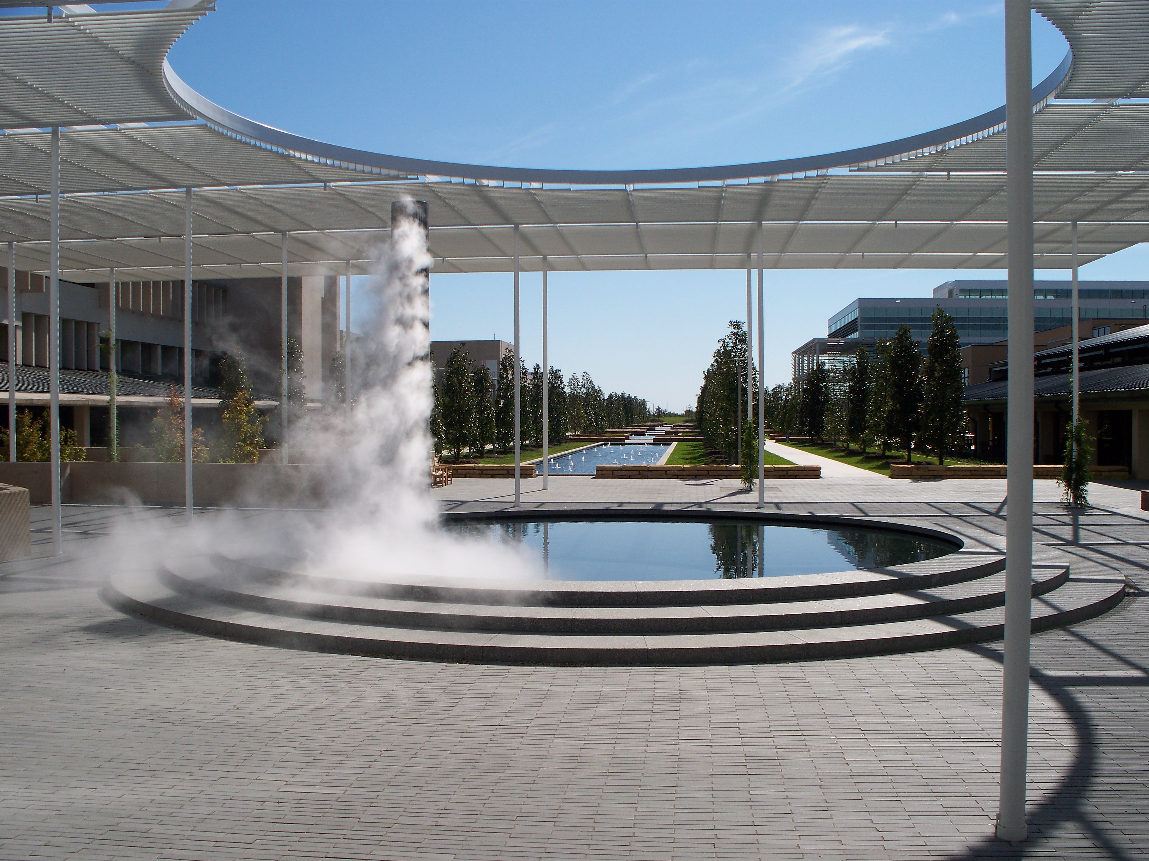 UT 댈러스의 의식용 홀은 텍사스 인스트루먼트 마이크로칩이 내장된 웨이퍼를 둘러싼 대학교 인장을 포함하며, 이는 대학 설립에 TI가 기여한 역할을 나타낸다. 헤드피스의 강철 밴드와 직원의 금속 발은 1995년 9월 우주왕복선 엔데버에 탑승하여 우주로 날아간 UT 댈러스 우주 과학 연구소의 과학 기기로 만들어졌다.[26][27]