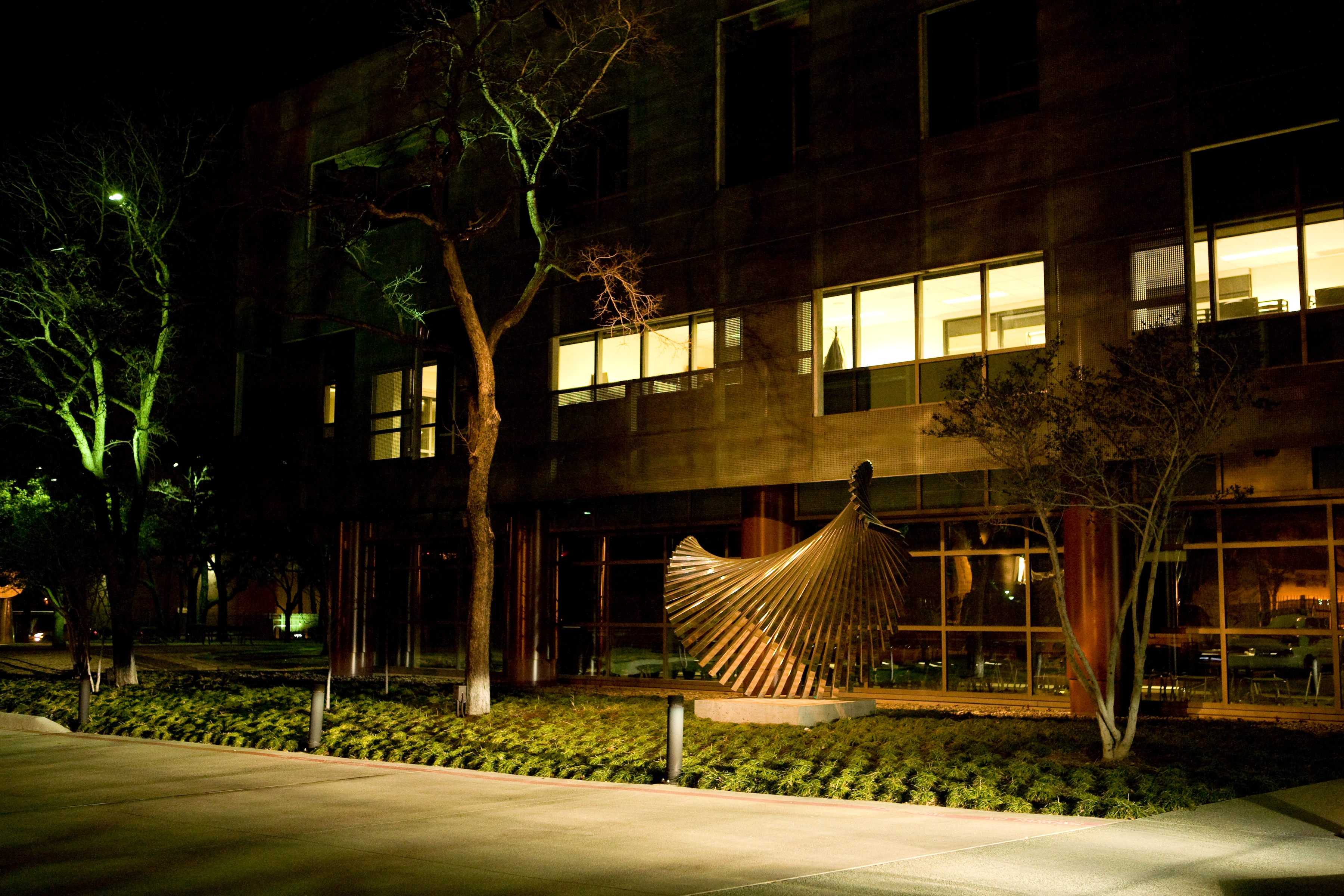 UT 댈러스의 의식용 홀은 텍사스 인스트루먼트 마이크로칩이 내장된 웨이퍼를 둘러싼 대학교 인장을 포함하며, 이는 대학 설립에 TI가 기여한 역할을 나타낸다. 헤드피스의 강철 밴드와 직원의 금속 발은 1995년 9월 우주왕복선 엔데버에 탑승하여 우주로 날아간 UT 댈러스 우주 과학 연구소의 과학 기기로 만들어졌다.[26][27]