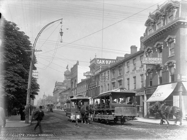 1861년 토론토 시는 윌리엄스 옴니버스 버스의 승객 수가 포화 상태에 이르자 30년 동안 마차 철도 운영권을 인가하여 캐나다 최초의 노면전차인 토론토 노면 철도(TSR)가 운행을 시작했다.[5] 1891년 토론토 철도 회사(TRC)가 운영권을 넘겨받아 1892년에 최초의 전력 노면전차를 도입했고, 1894년까지 마차 철도는 완전히 사라졌다.[5]