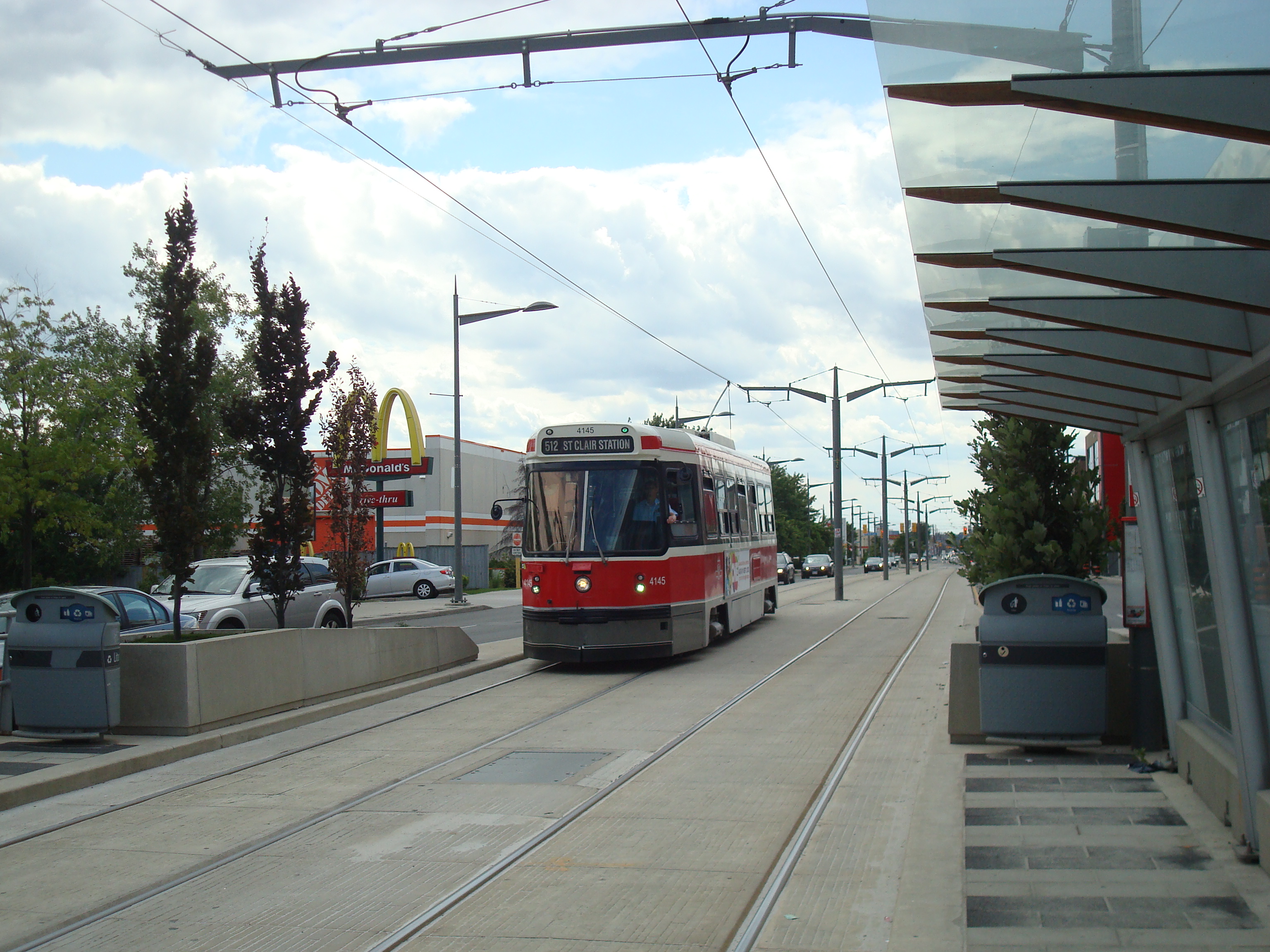 2000년대 초반, 토론토 교통국은 1928년부터 1935년 사이에 제거되었던 세인트클레어 애비뉴의 노면전차 전용 선로를 재건축하였다.[174] 이 공사에 항의해 TTC를 상대로 공사 중지 가처분 소송을 제기한 인근 상인들은 2005년 10월에 승소하여 공사가 중지되었지만, 2006년 2월 항소심에서 시 측의 손을 들어주어 2006년 중순에 공사가 재개되었다.[174] 세인트클레어역에서 본 로드까지 2006년 말까지 1단계, 2007년 중순부터 더퍼린 스트리트에서 칼레도니아 로드까지 2단계, 2009년 12월 20일에는 세인트클레어에서 랜즈다운 애비뉴 남쪽과 서쪽에 있는 얼스코트 루프까지 3단계 공사가 진행되었다. 마지막 단계인 얼스코트 루프에서 킬 스트리트 서쪽의 건스 루프까지 공사는 2010년 6월 30일에 완공되어 노면전차가 전용도로 전 구간을 운행하게 되었다.[174]