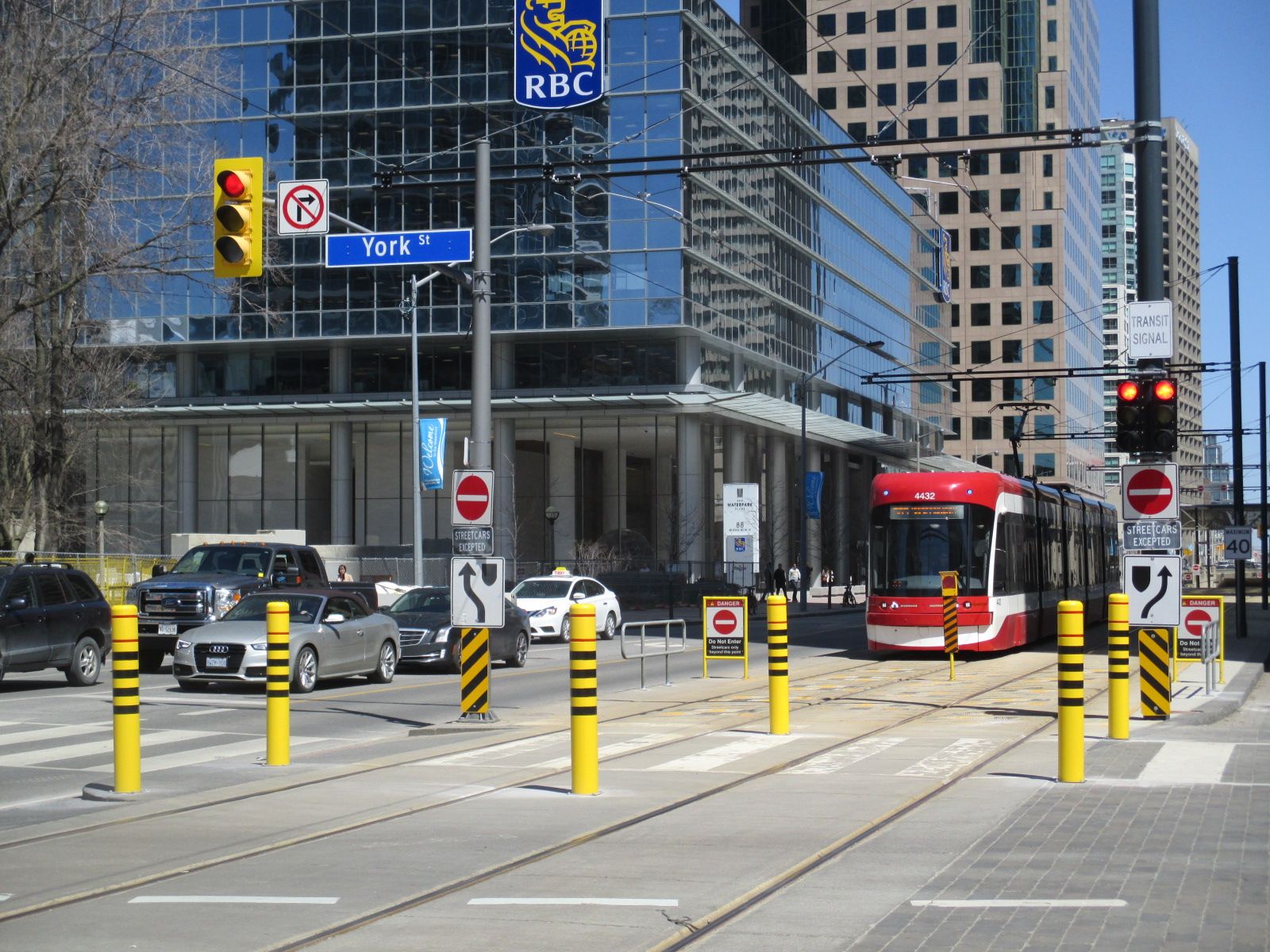 킹 스트리트 시범 프로젝트를 통해 킹 스트리트에는 노면전차 통행에 우선권을 주게 되었는데, 전용도로는 아니지만 자동차는 배서스트에서 자비스까지 주요 교차로에서 직진은 불가능하고 우회전만 할 수 있도록 설계되었다.[177] 2018년 12월, 토론토 시의회는 시범 프로젝트를 2019년 7월 말까지 7개월 연장하기로 하였고,[178] 2019년 4월 16일에는 시의회에서 이 프로젝트를 영구화하는 방안을 찬성 22표, 반대 3표로 가결하였다.[179]
