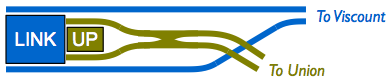 터미널 링크는 피어슨 국제공항 1터미널과 3터미널, 비스카운트역을 연결하는 무료 셔틀 열차이다. 매일 대부분 시간대에 4분 간격으로 운행하며, 오전 7시 30분부터 11시 30분까지, 오후 11시 30분부터 다음날 오전 3시 30분까지는 8분 간격으로 운행한다.[5] 비스카운트 역까지의 총 소요 시간은 4분 미만이다.[1]