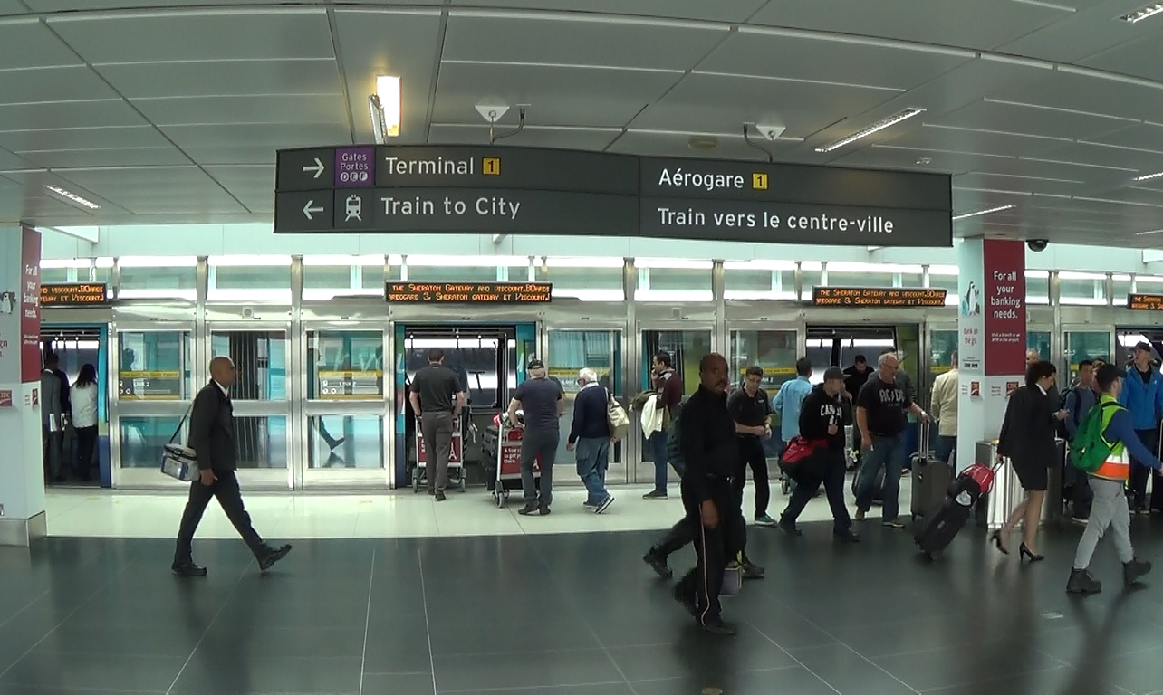 토론토 피어슨 국제공항 제1터미널역은 2006년 7월에 링크 열차 (현 터미널 링크)의 종착역으로 개통되었다. 이 역은 나중에 토론토 시내로 이어질 공항철도가 건설될 경우를 대비하여 확장 가능한 구조로 설계되었다.[1]