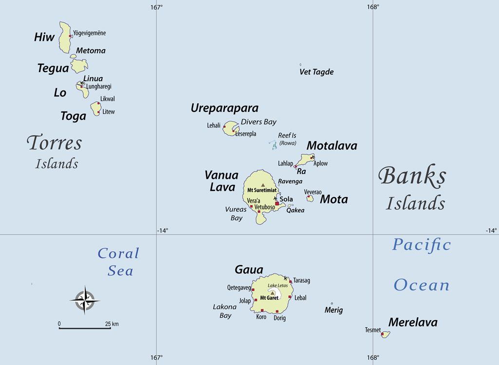 바누아투 최북단 화산섬인 뱅크스 제도는 오스트로네시아인들이 기원전 12세기경 정착 후 유럽 탐험가에 의해 발견되었고, 윌리엄 블라이에 의해 탐험되어 조지프 뱅크스 경의 이름이 붙여졌으며, 주민들은 자급 농업에 종사하며 다양한 언어와 문화를 유지하고 있다.