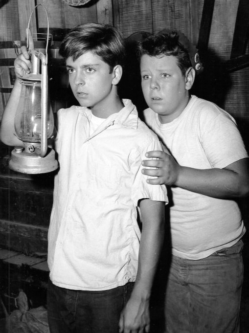 어린 배우 토미 레팅(왼쪽)이 CBS 텔레비전 시리즈 ''래시(Lassie)'' (1956)의 첫 번째 버전(1954-1957)에서 친구 포키 역의 도널드 킬러와 함께 제프 밀러 역을 맡았다.