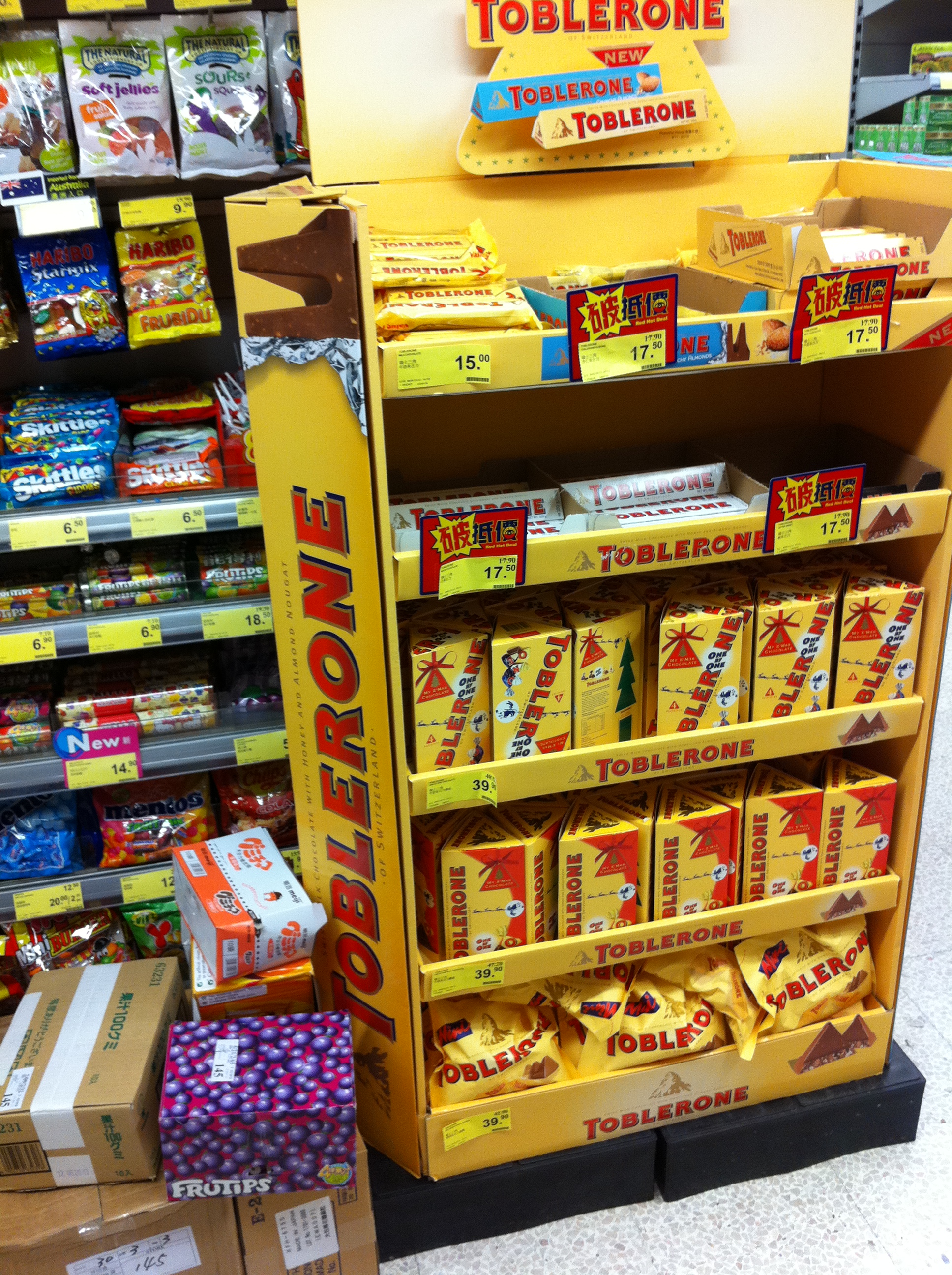 토블러 초콜릿의 초기 광고 중 일부는 국제어인 에스페란토[15]와 이도로 제작되었다.[16]