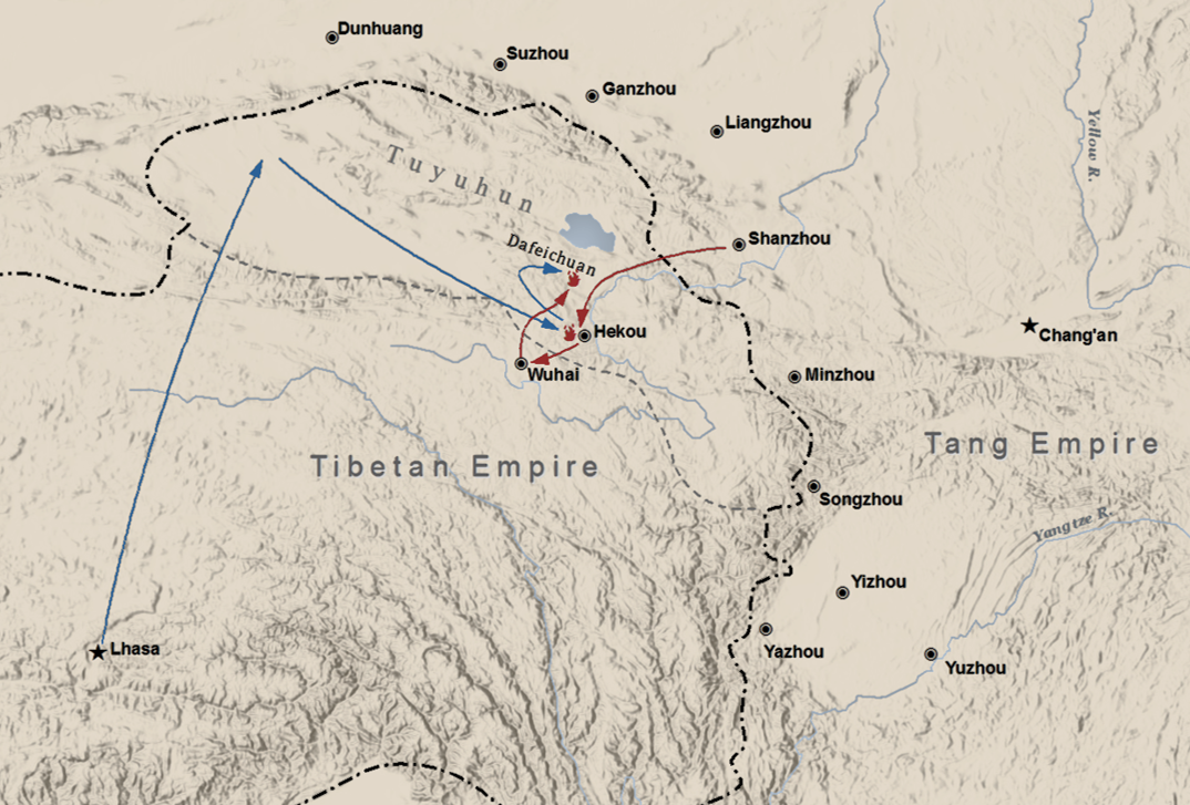 당나라 초기에 토욕혼 제국은 점차 쇠퇴하였고, 당나라와 티베트 제국 사이의 갈등에 점점 더 휘말리게 되었다. 토욕혼은 동서 간의 중요한 무역로를 장악하고 있었기에 당나라의 침략 대상이 되었다.