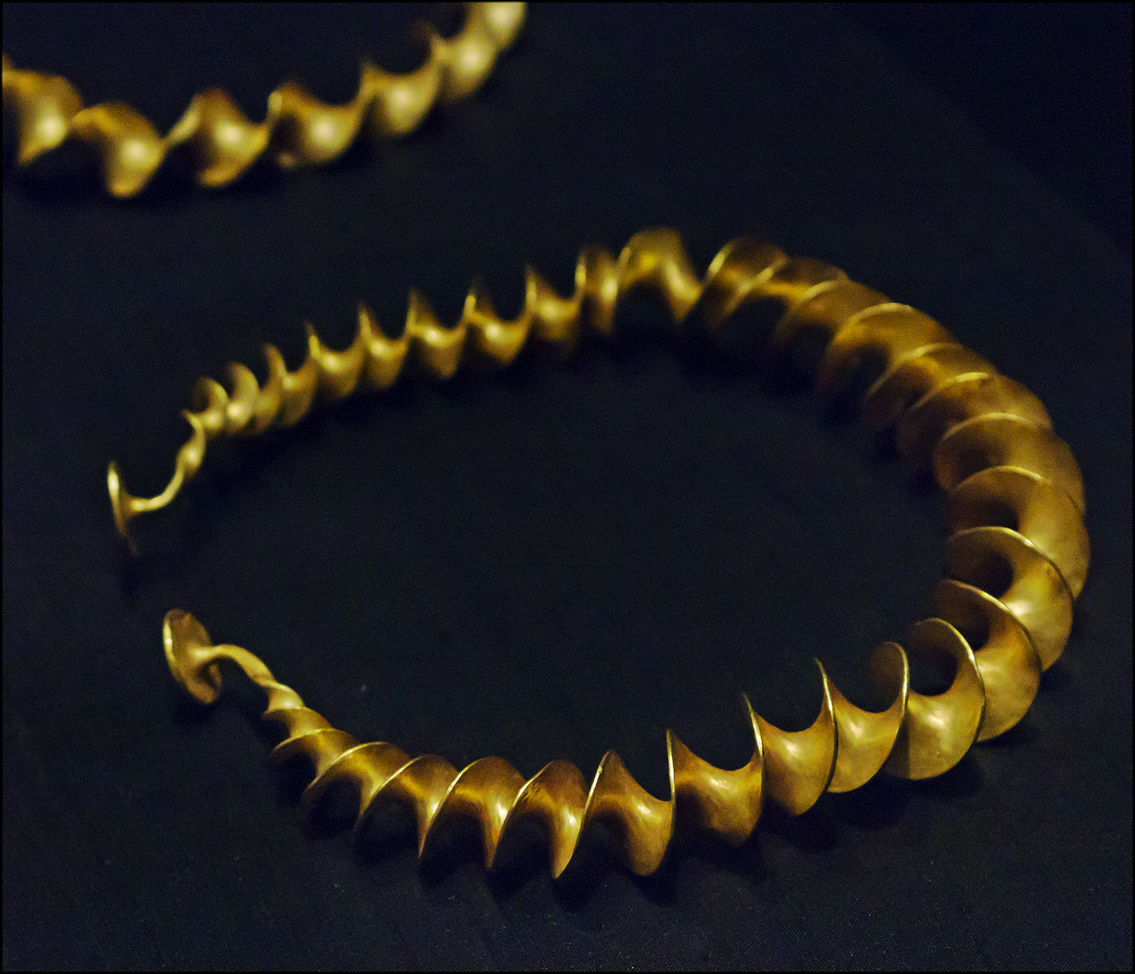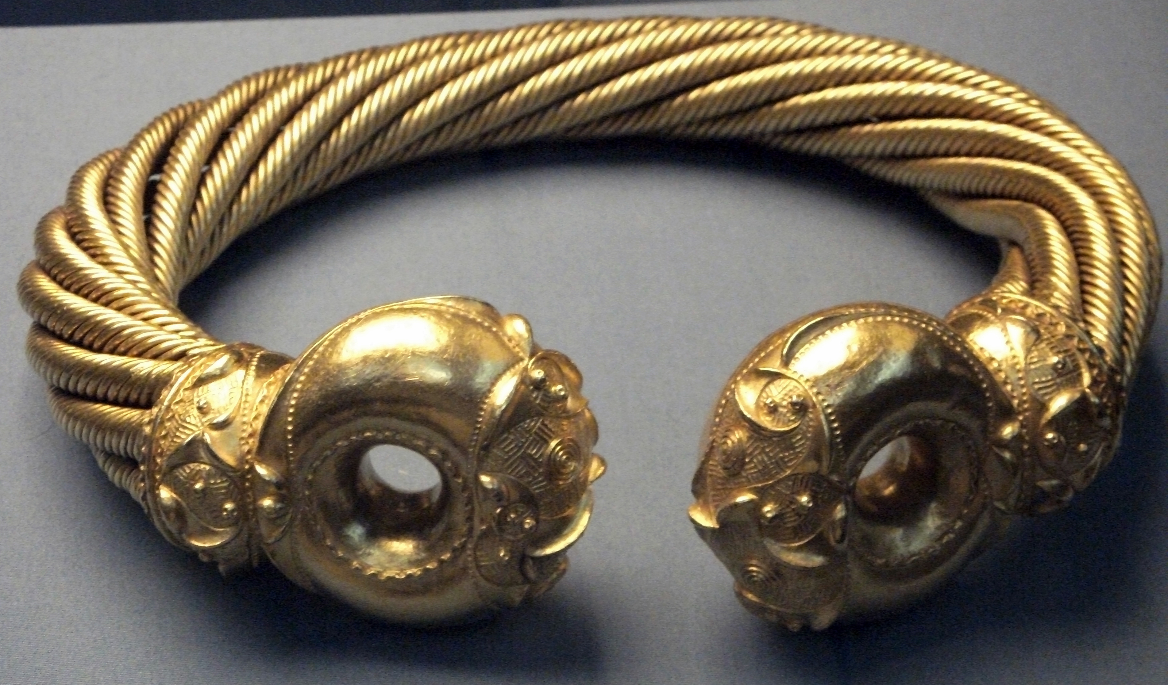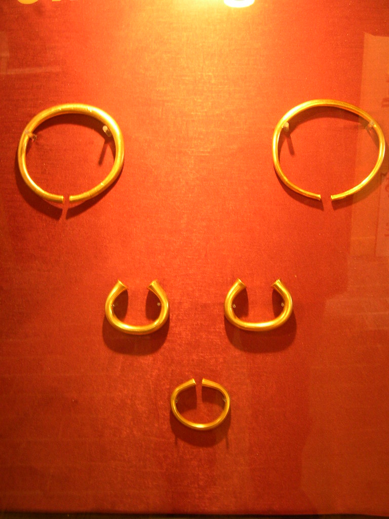 - 꼬인 리본 토크: 얇은 금 조각을 나선형으로 꼬아 만든 형태로, 청동기 시대와 철기 시대 모두에서 발견된다.