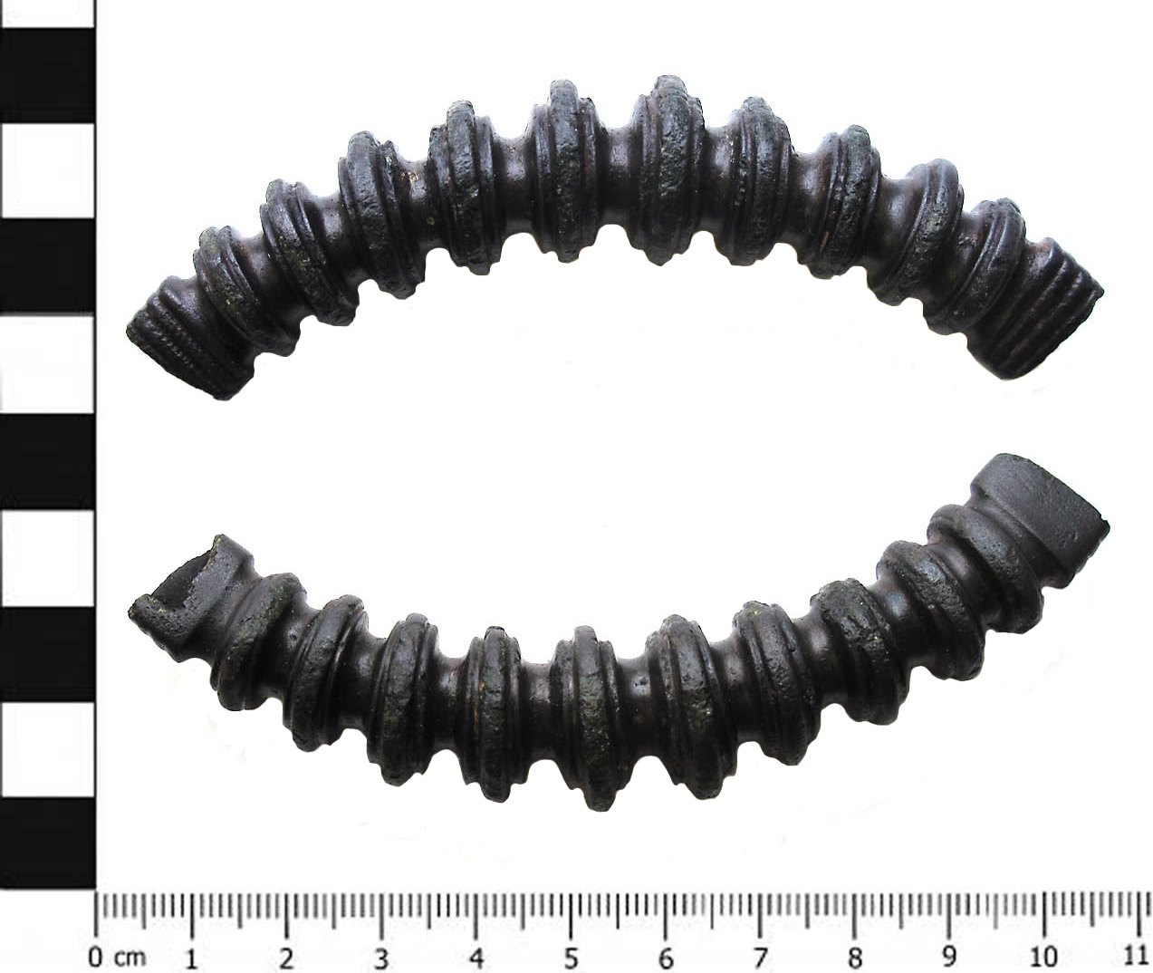 로마의 브리타니아 정복 이후, 서기 75년경부터 한 세기 이상 동안, "구슬 목걸이"라고 불리는 다른 유형의 목걸이가 주로 북부 "변경" 지역인 로마령 브리타니아에서 나타났다. 이 목걸이는 A형(별도의 "구슬"로 구성)과 B형(한 조각으로 구성) 두 가지 유형이 있으며, 귀금속이 아닌 구리 합금으로 만들어져 엘리트 철기 시대 켈트족의 예시보다 사회 전반에 더 널리 퍼져 있었다.[30]