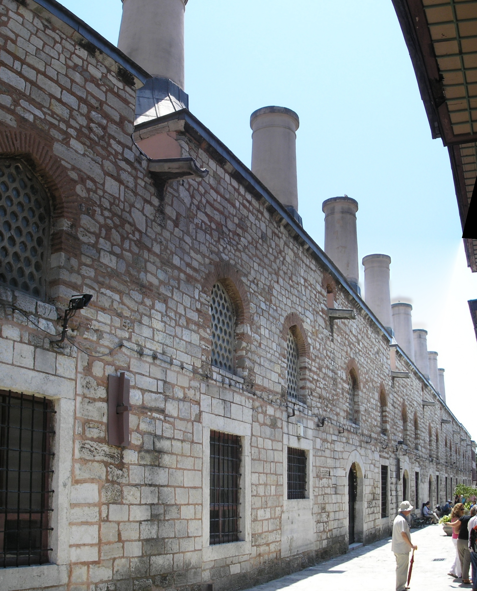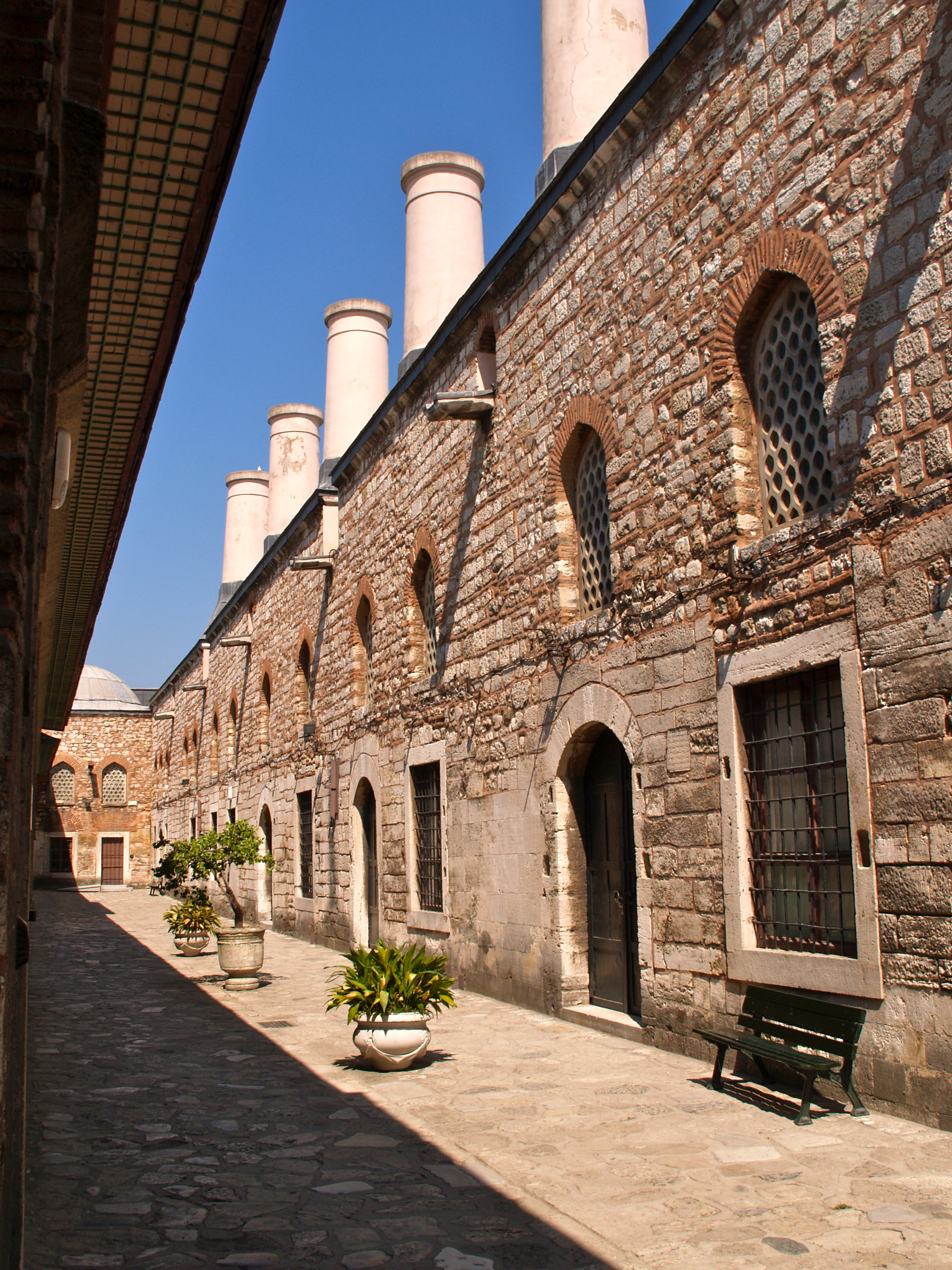 궁전 부엌(Saray Mutfakları)은 15세기 궁전 최초 건설 당시에 지어졌으며 쉴레이만 1세 치세에 확장되었다. 에디르네 궁전의 부엌을 본떠 만들어졌다.[39] 1574년 화재로 부엌이 손상된 후, 궁정 건축가 미마르 시난에 의해 개조되었다.[39] 재건된 부엌은 20개의 넓은 굴뚝이 두 줄로 이어져 있으며, 이 굴뚝들은 미마르 시난이 추가한 것이다. 부엌들은 제2정원과 마르마라 해 사이에 뻗어 있는 내부 거리에 위치해 있다. 이 구역으로 들어가는 입구는 제2정원 현관의 세 개의 문을 통해 이루어진다. 황제 식량창고(하부 주방) 문, 황제 부엌 문, 그리고 제과 부엌 문이다. 궁전 부엌은 10개의 돔형 건물로 구성되어 있다. 황제 부엌, 궁전 학교, 하렘(여성 거처), 비룬(궁전의 외곽 서비스 구역), 부엌들, 음료 부엌, 제과점 부엌, 크리머리, 창고, 그리고 요리사들을 위한 방들이다. 이곳은 오스만 제국에서 가장 큰 부엌이었다. 약 4,000명의 사람들을 위한 음식이 준비되었고, 주방 직원은 800명이 넘었다. 부엌에는 직원들을 위한 기숙사, 목욕탕, 그리고 모스크가 있었는데, 대부분 시간이 지나면서 사라졌다.[40]