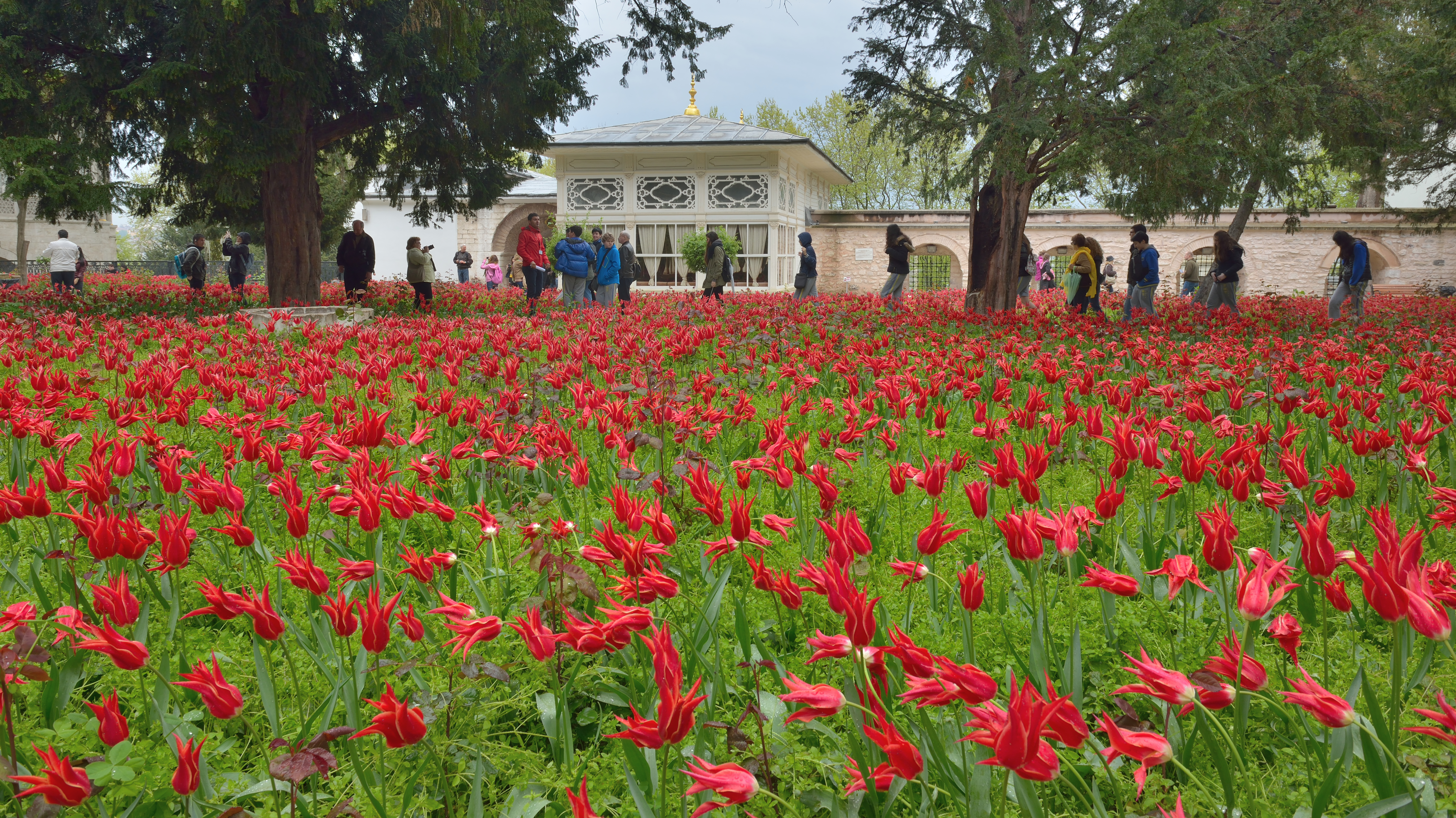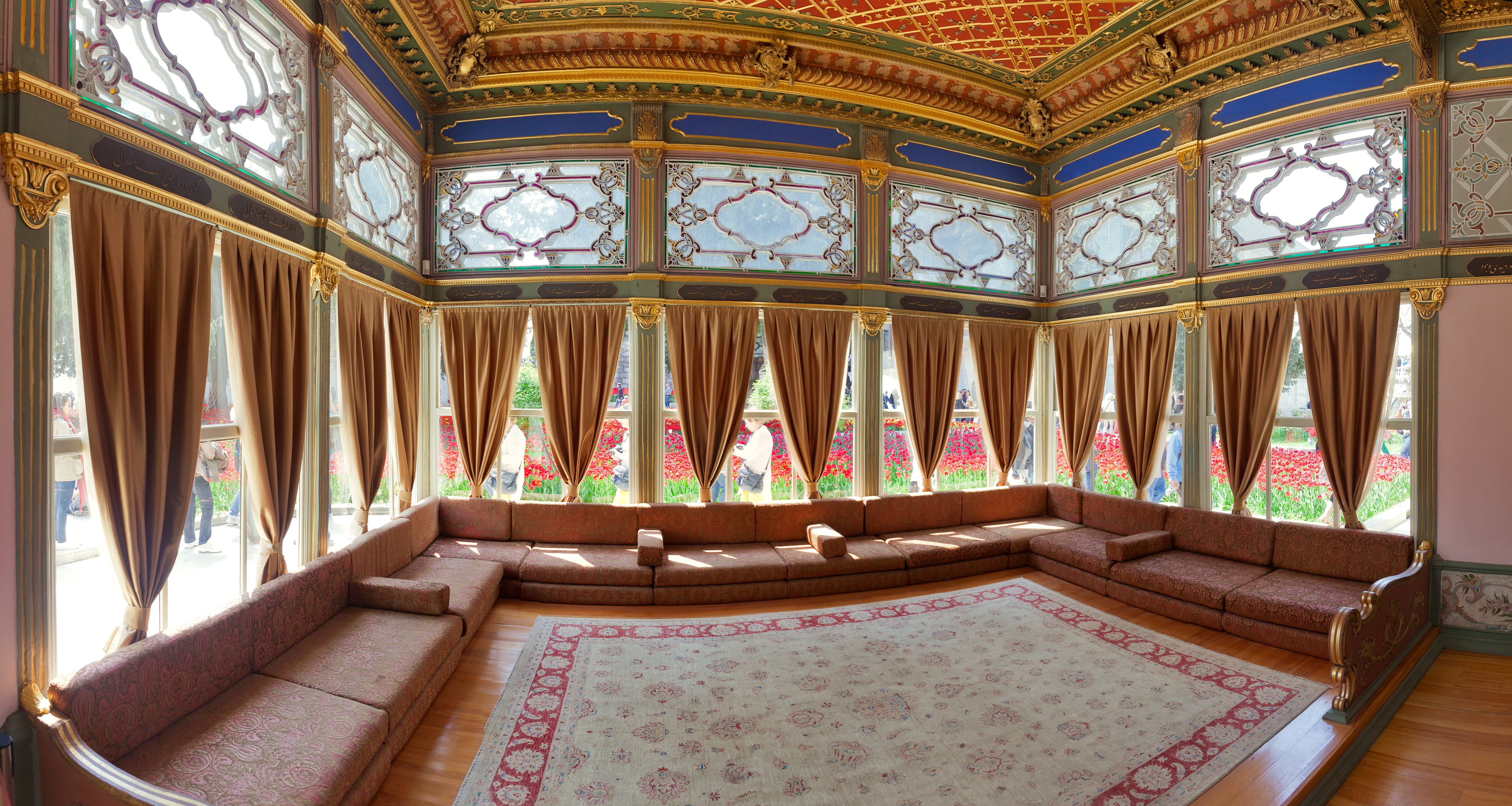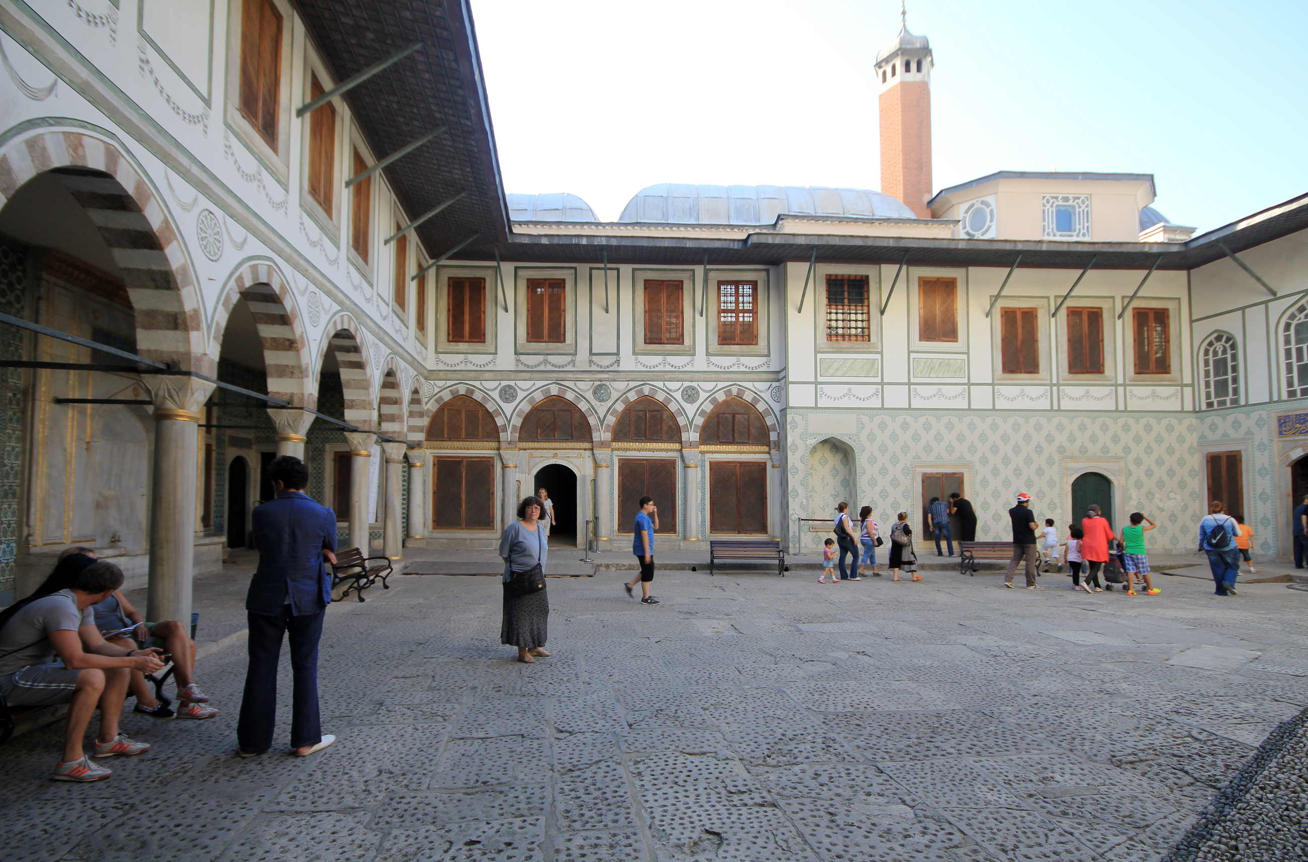 하렘(Harem-i Hümayûn)은 술탄의 사적인 거주 공간 중 하나로, 400개가 넘는 방이 있었다.[73] 술탄의 어머니인 발리데 술탄, 술탄의 첩과 아내, 자녀들을 포함한 가족, 그리고 그들의 시종들이 이곳에 살았다.[74] 하렘은 복도와 안뜰을 통해 연결된 일련의 건물과 구조물로 구성되어 있다. 하렘에 거주하는 모든 서비스 팀과 계층적 그룹은 안뜰 주변에 자체 거주 공간을 가지고 있었다. 방의 수는 확실하지 않지만, 아마도 100개가 넘었을 것으로 추정되며,[75] 그중 몇몇만이 일반인에게 공개된다. 이 공간들은 각각 후궁 환관, 총감독 환관(''다르위사데 아가''), 첩, 왕비, 술탄의 배우자, 왕자, 총애받는 자들에 의해 점유되었다. 술탄, 왕비, 술탄의 배우자와 총애받는 자들, 왕자, 첩, 그리고 후궁을 지키는 환관을 제외하고는 하렘의 문을 넘어서는 출입이 허용되지 않았다.