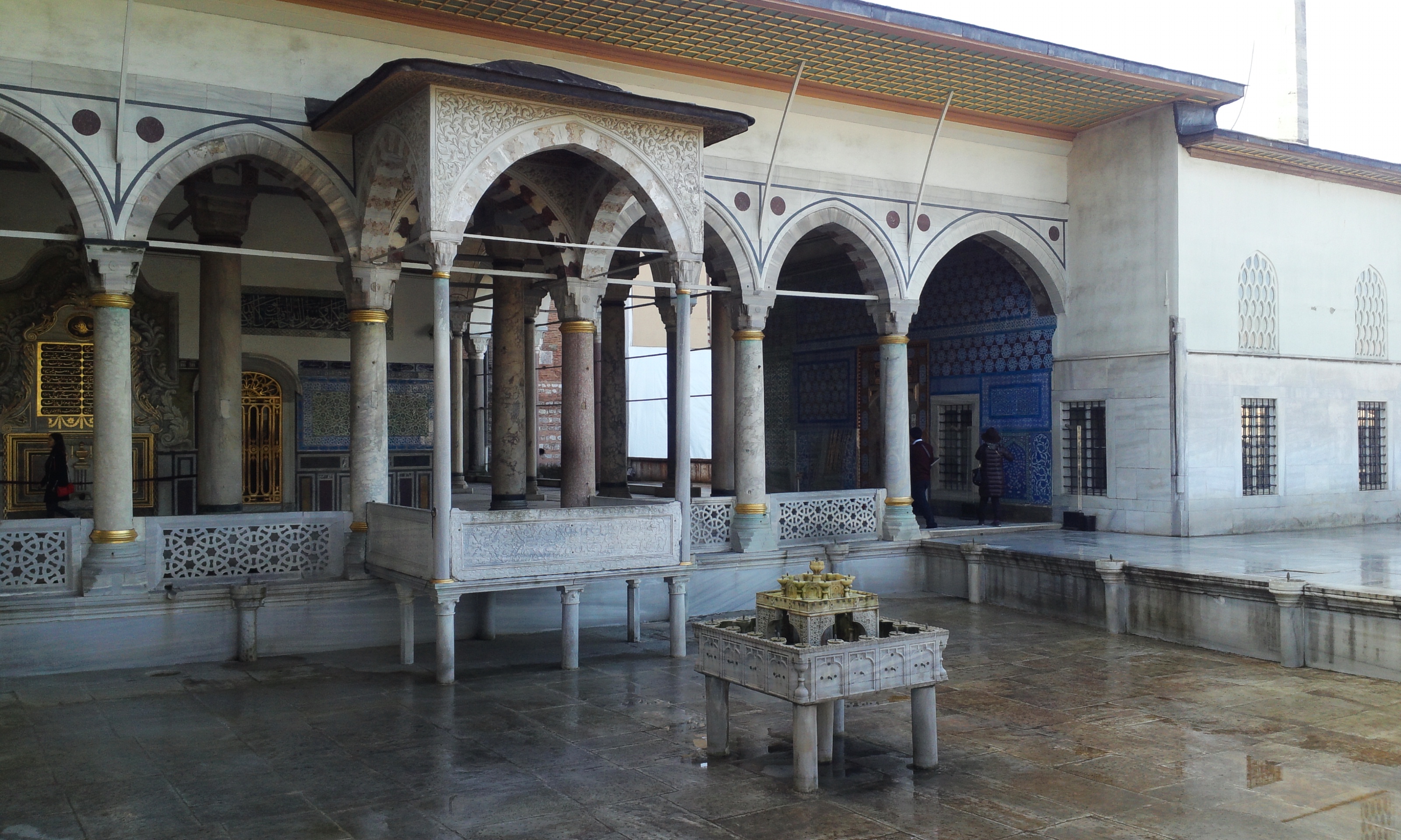 “인사의 문” 안쪽은 “두 번째 정원”이라 불리는 공식 행사에 사용되었던 광장이며, 이를 외정 시설이 둘러싸고 있다. 옥좌 회의가 열렸던 “돔의 방”과 국고는 그 한쪽에 위치한다. 옛 국고는 현재 무기 전시실이 되어 있으며, 메이지 시대에 이스탄불에 체류했던 일본인 야마다 소유(山田宗有, 야마다 토라지로)가 압뒬하미트 2세에게 선물했던 일본산 갑옷(甲冑)이 전시되어 있다.