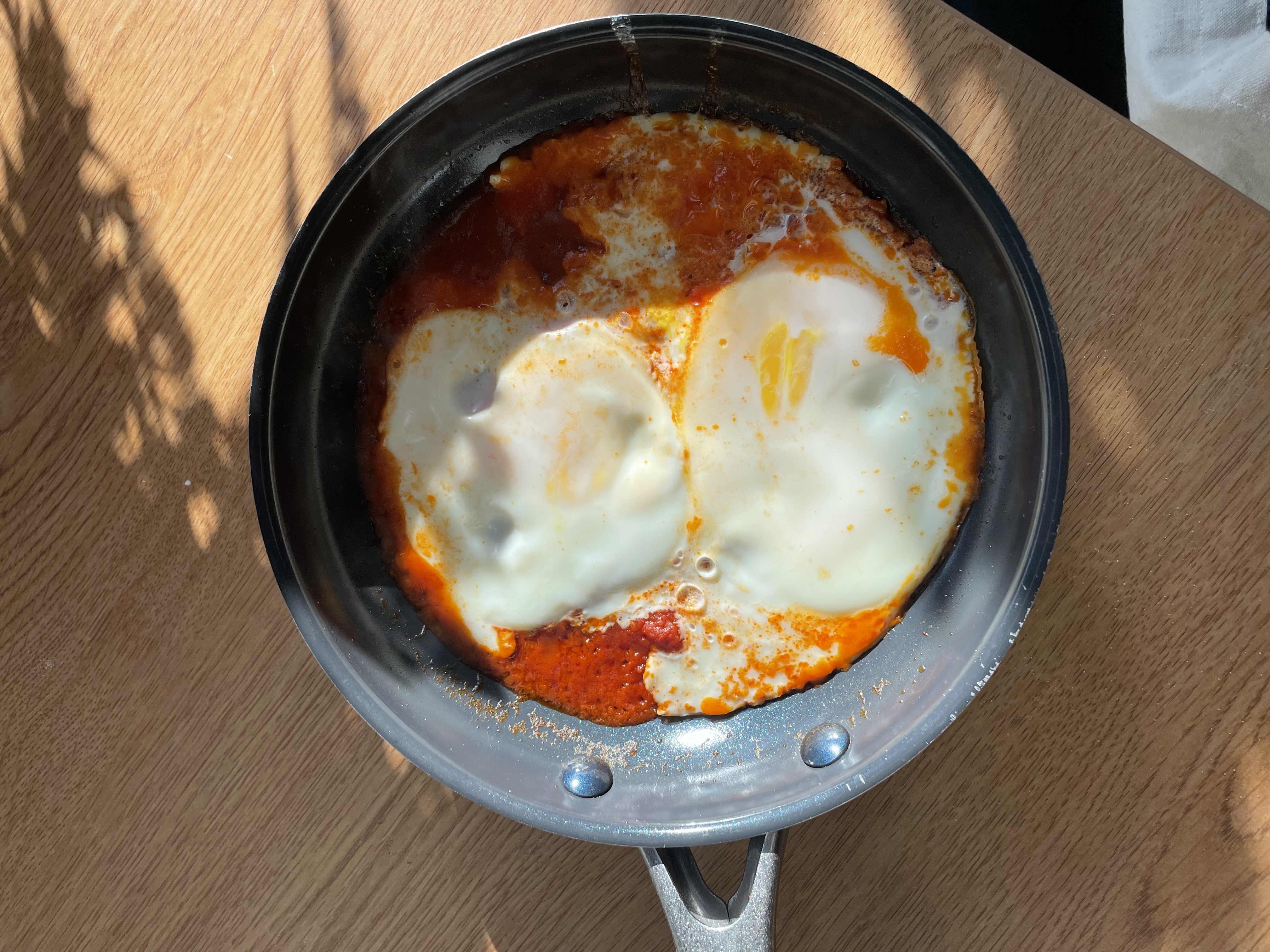 므트브카 또는 샥슈카 | 토마토, 고추, 양파를 기본으로 만든 스튜에 계란을 깨서 넣고 익힌 요리. |