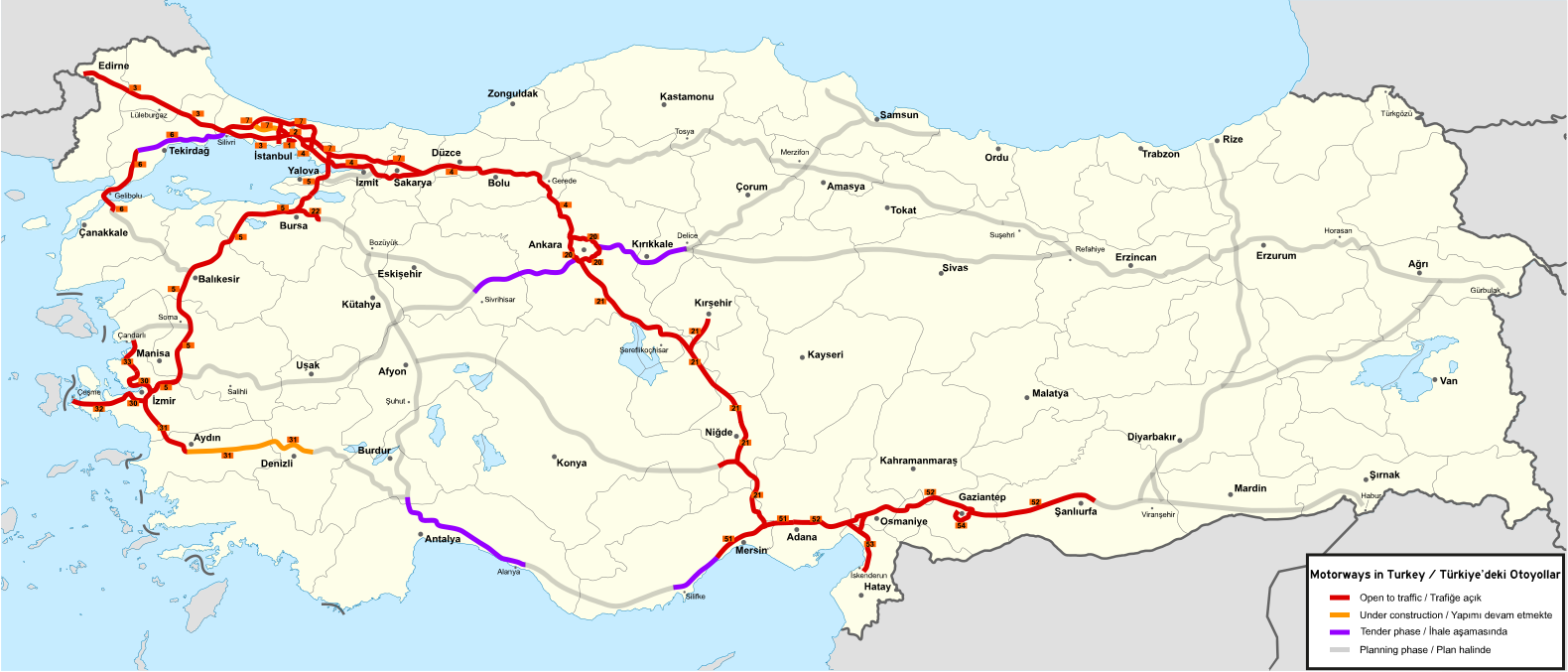 '''튀르키예에는 세 종류의 도시 간 도로가 있다.'''