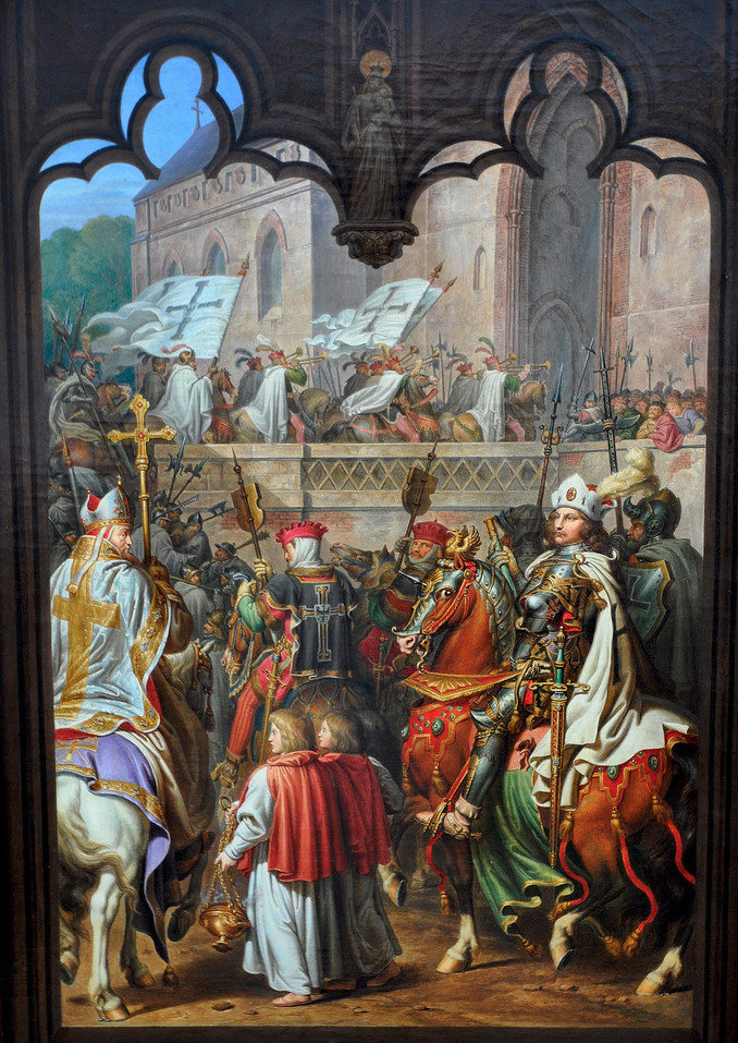 전설에 따르면, 예루살렘 왕국의 브리엔의 장이 튜튼 기사단장에게 예루살렘 십자의 변형으로 이 십자를 수여했으며, 백합 문장은 1250년 8월 20일 프랑스 왕국의 루이 9세가 수여했다고 한다. 이 전설은 근대 초(크리스토프 하르트크노흐, 1684)까지 거슬러 올라가지만, 이 디자인이 실제로 13세기 중반에 기원했다는 증거가 있다.[3]