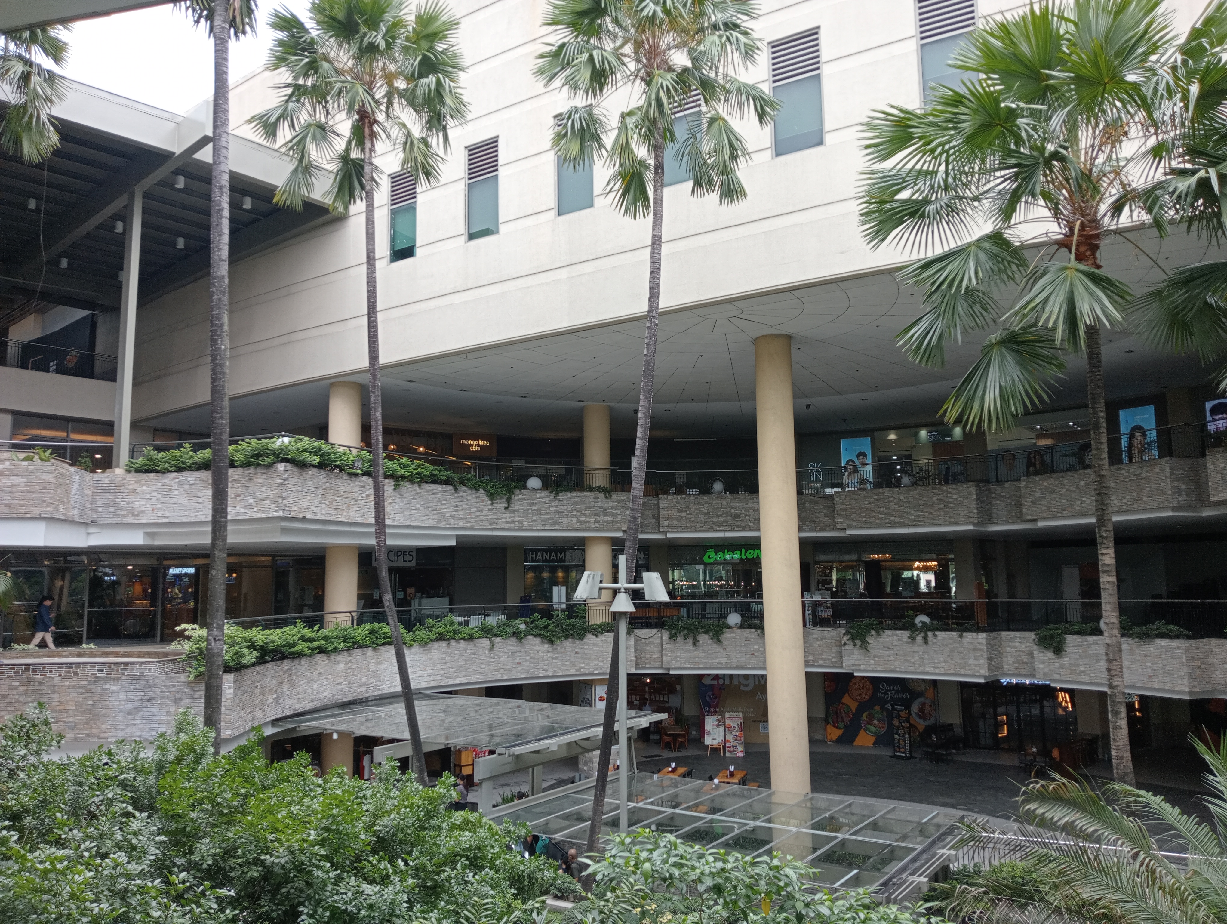 쇼핑몰은 4개의 주요 층과 지상 및 지상에 2개의 부속 층으로 구성되어 있다. 쇼핑몰은 분수와 조경이 특징인 야외 공간으로 특징지어지며, 이 분수는 쇼핑몰 위에 위치한 녹지 공간인 트라이노마 파크의 풀로 흘러 들어간다. 트라이노마 파크는 1 헥타르에 걸쳐 있는 2층 규모의 공원으로, 다양한 요리를 제공하는 레스토랑과 공연 및 쇼를 위한 무대가 있다. 트라이노마 파크는 쇼핑몰의 3층과 연결되어 있다. 쇼핑몰에는 노스 주차 빌딩과 민다나오 주차 빌딩이라는 두 개의 주차 빌딩이 있으며, 야외 주차 공간도 있다.