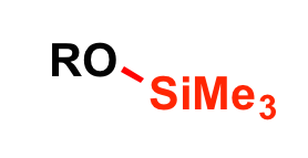 알코올, 페놀류, 카르복실산 등, 하이드록시기 때문에 휘발성이 낮은 화합물에 트리메틸실릴기를 도입하면, 그 휘발성을 높일 수 있다. 하이드록시기(-OH)에 적절한 트리메틸실릴화제를 작용시켜 수소를 치환하여, '''트리메틸실록시기'''(-OSi(CH3)3)로 만든다. 이 때 생성물은 트리메틸실릴 에테르이다.