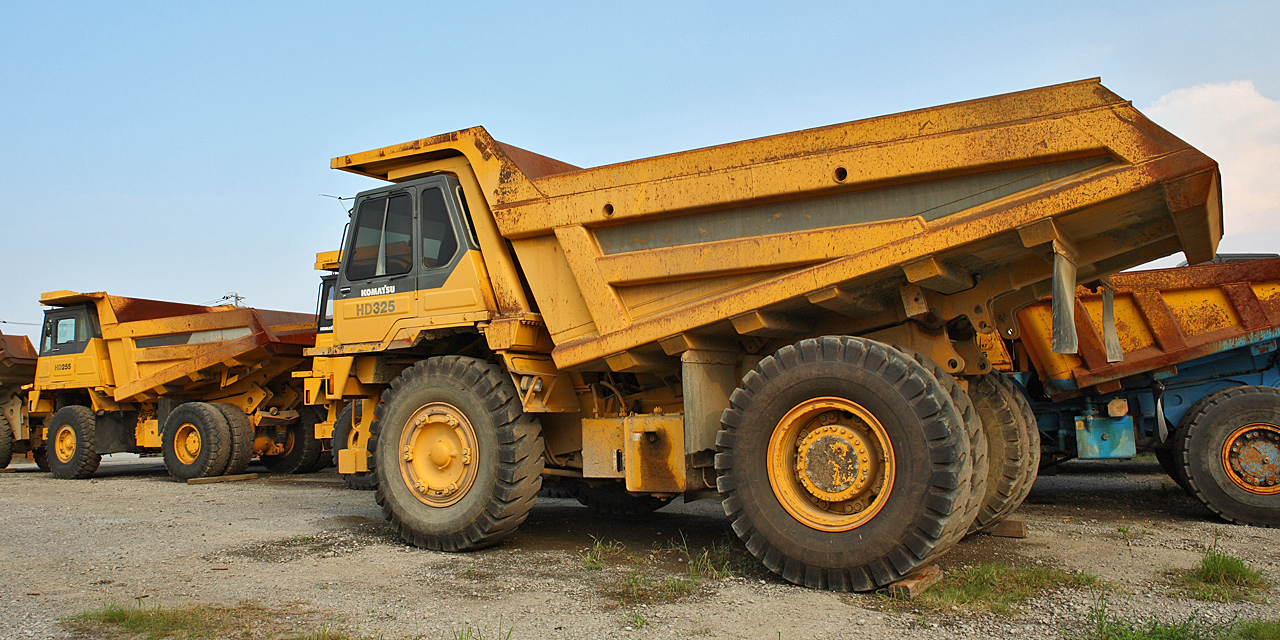 - 덤프트럭(영국에서는 "덤퍼"라고 함)은 모래, 자갈 또는 흙과 같은 느슨한 자재를 건설 현장으로 운반한다. 일반적인 덤프트럭은 뒤쪽에 경첩이 달린 오픈 박스형 적재함이 있으며, 앞쪽이 들어올려져 적재함에 있는 자재를 트럭 뒤쪽 지면에 내릴 수 있다("덤핑").