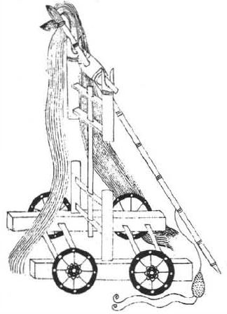 중국 서쪽에서는 12세기까지 주요 공성 엔진으로 사용되었으며, 이후에는 카운터웨이트 트레뷰셋으로 대체되었다.[20]