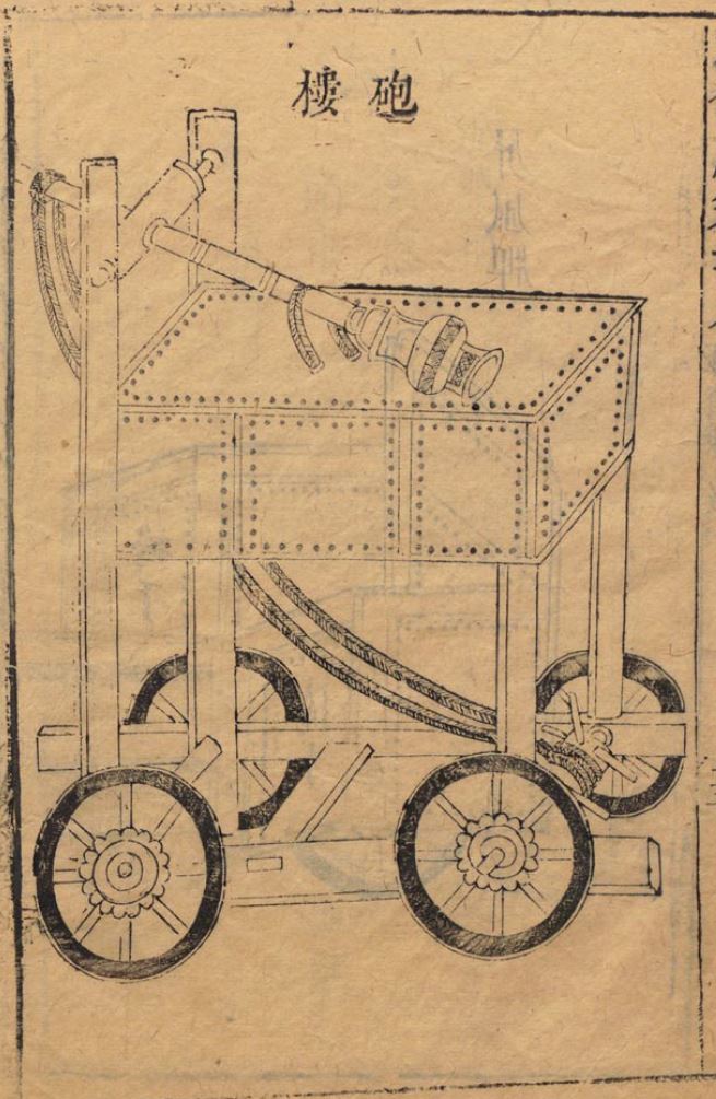 서기 1세기경, ''좌전''과 ''시경''의 구절들이 견인식 트레뷰셋에 대한 언급으로 해석되었다. ''사기''에는 "날아가는 돌의 무게는 12근이며, 장치를 통해 300보를 날아간다."라고 기록되어 있다. 한나라 시대에 쇠퇴했지만, 삼국 시대에 다시 공성 무기로 사용되었고, 이후에는 돌 던지는 기계, 뇌차(thunder carriages), 돌 수레(stone carriages) 등으로 불렸다. 573년에는 배에 설치되어 적 요새 공격에 사용되기도 했다.